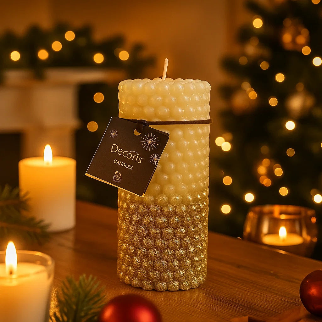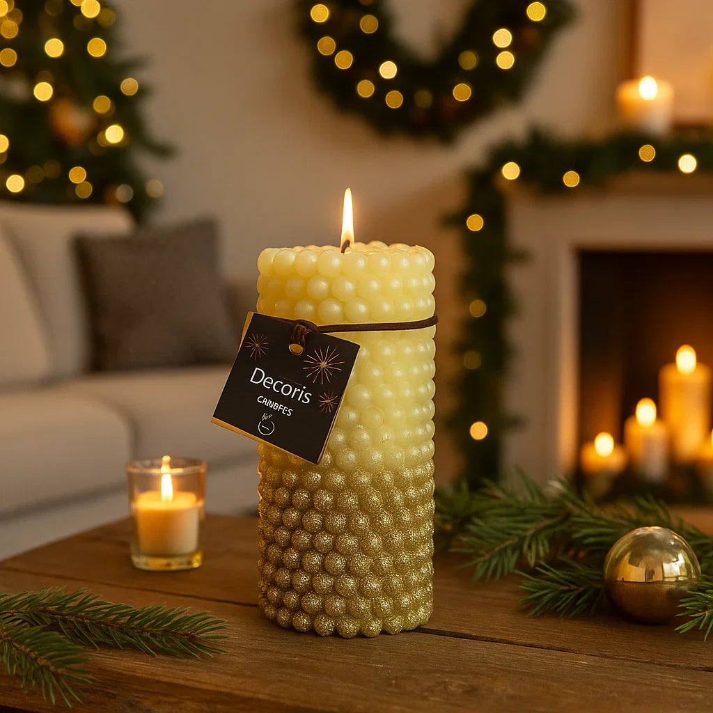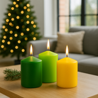 Candela cilindrica a cera colorata decorazione natalizia h 7,5 cm