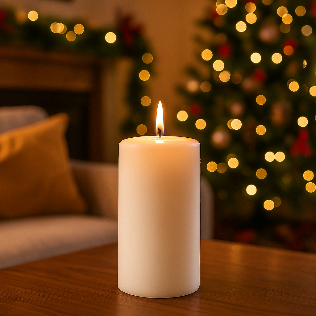 Candela cilindrica decorata "Pillar Lucid" decorazione natalizia Ø 9 cm