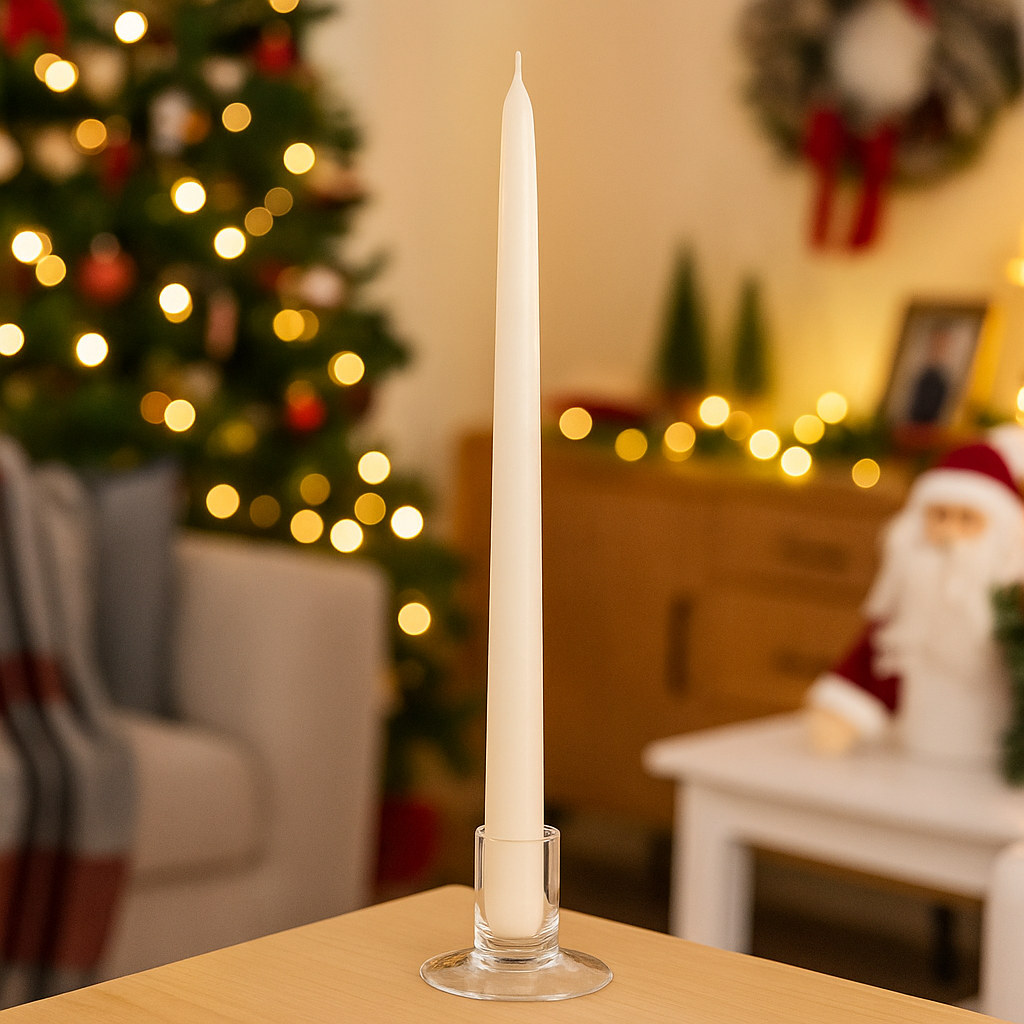Candela classica a stelo laccata bianco decorazione per interno 30 X 2,2 cm