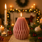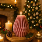 Candela decorativa in cera plissettata con glitter color rosa velluto