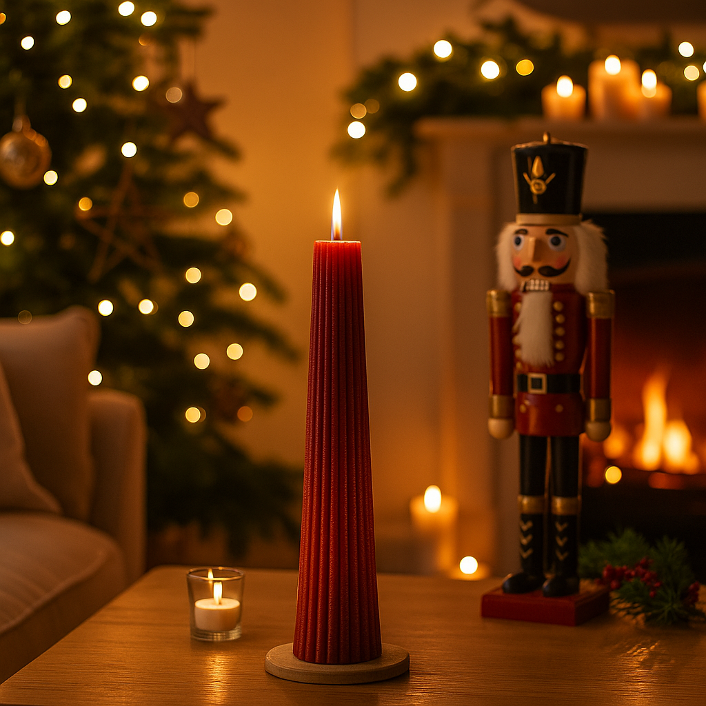 Candela Natalizia Cono con Righe Rosso decorazione per tavola e soggiorno h 25 cm