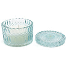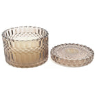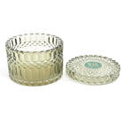 Il cofanetto che ospita la candela è in vetro spesso e trasparente, spesso arricchito da dettagli decorativi che ne esaltano l'estetica.
