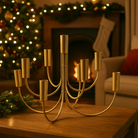Candelabro da appoggio con 9 fuochi, in metallo, color oro, 31 x 38 x 38 cm