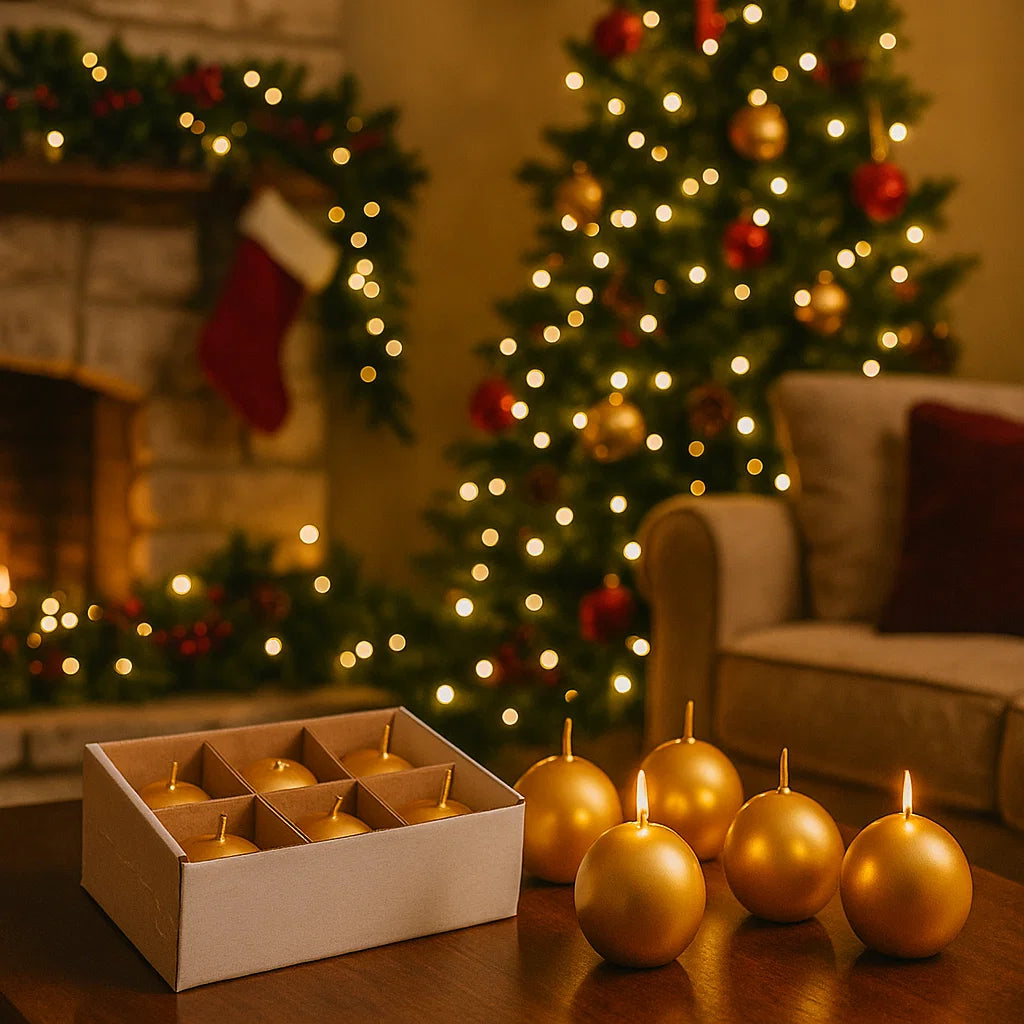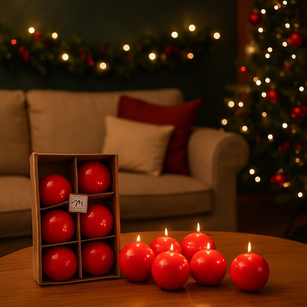 Candele sferiche in cera lucide Ø 4,5 cm decorazione natalizia set da 6