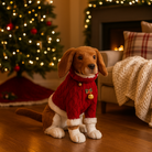 Cane Cocker realistico marrone con maglioncino rosso, altezza 37 cm