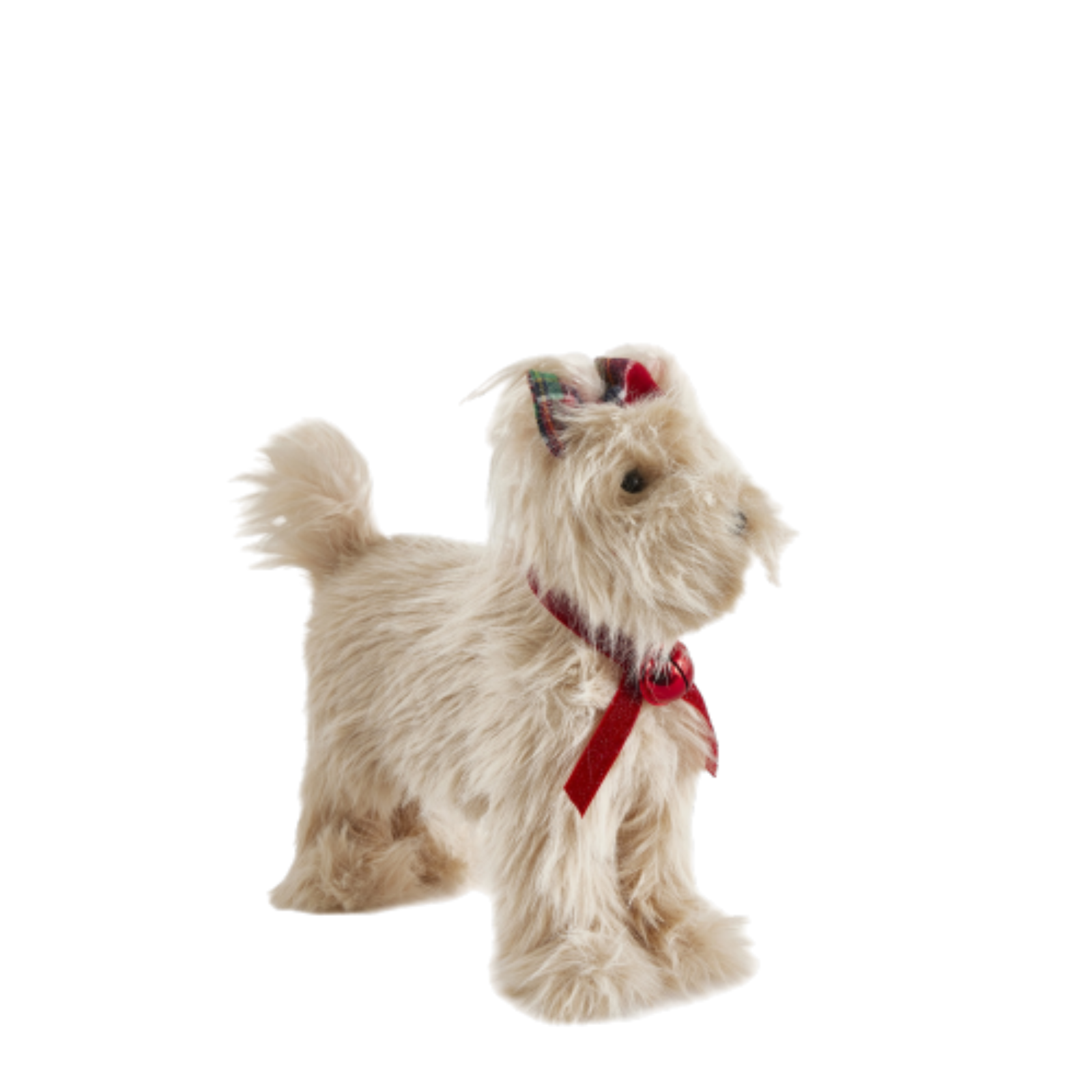 Cane maltese altamente realistico di colore bianco con fiocco rosso, altezza 32 cm