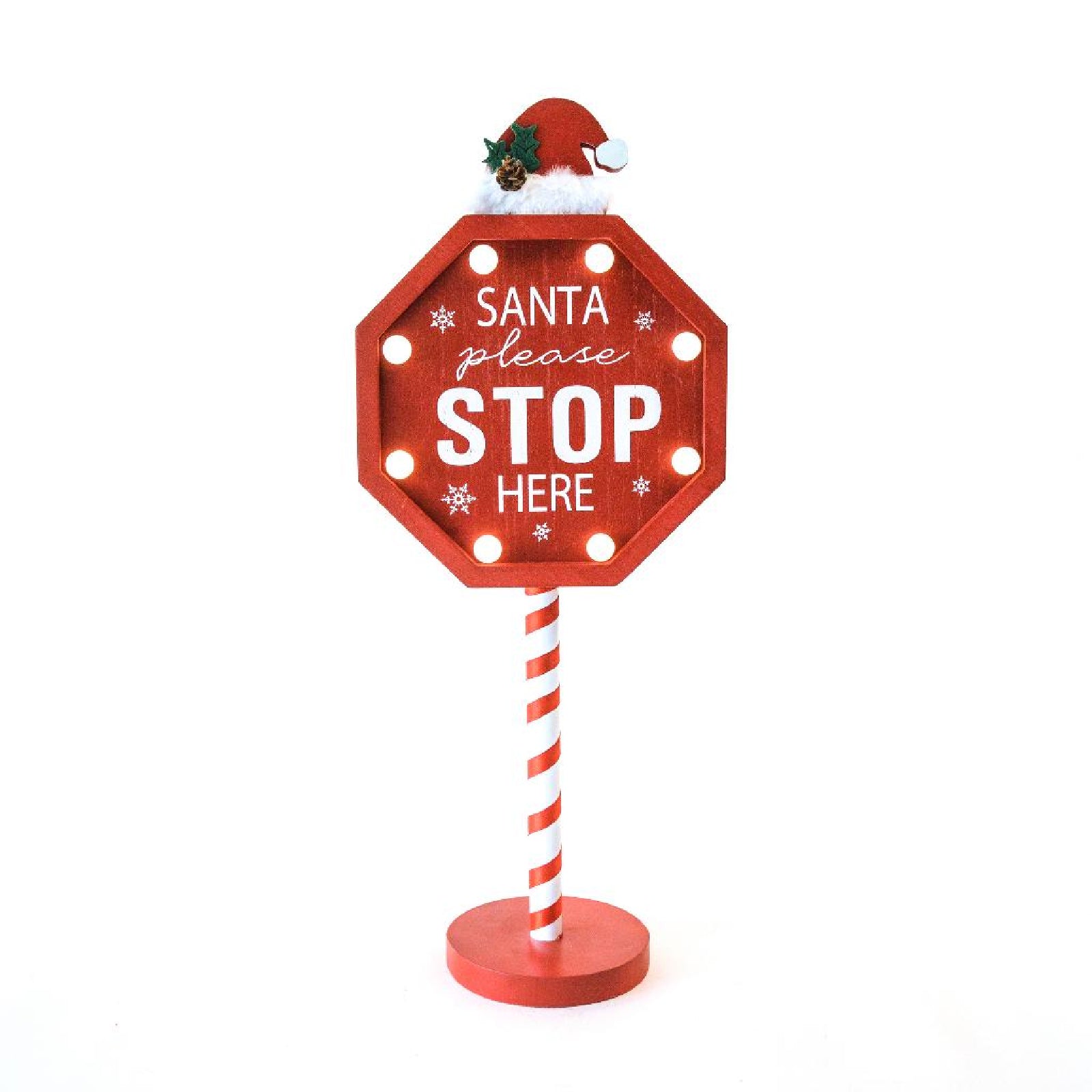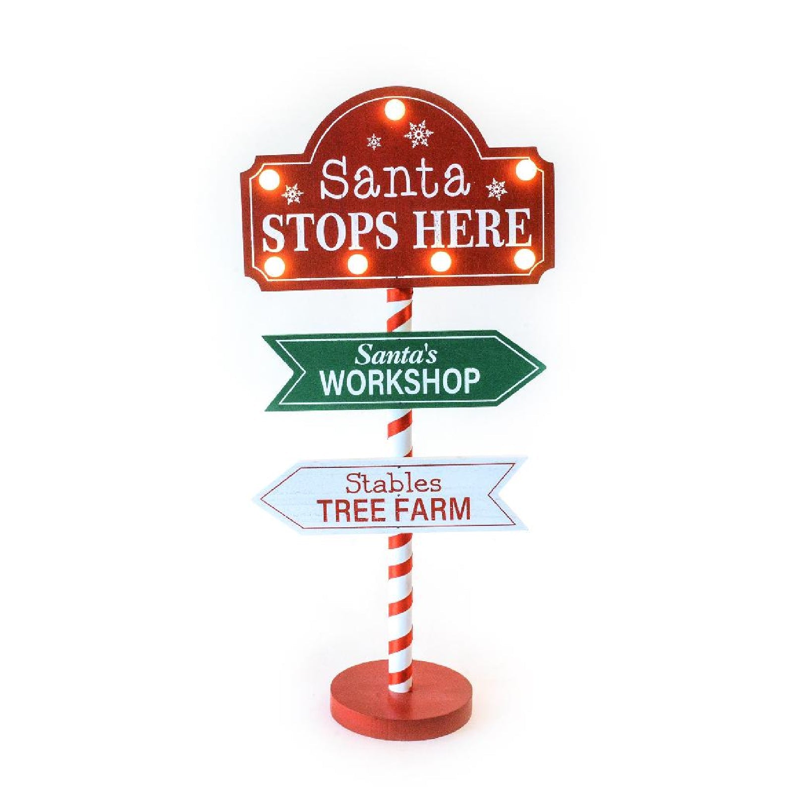 Cartello segnaletico natalizio in legno con luci a batteria decorazione natalizia