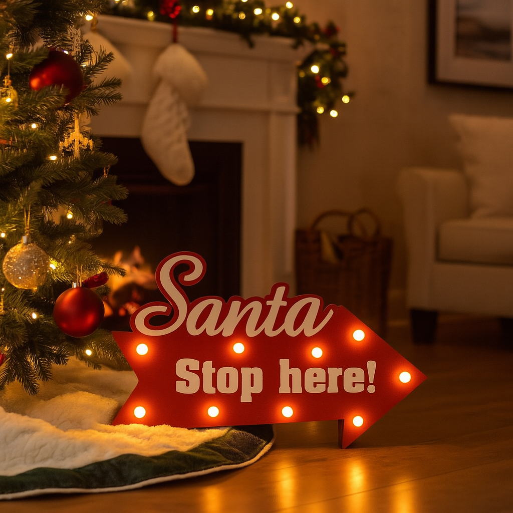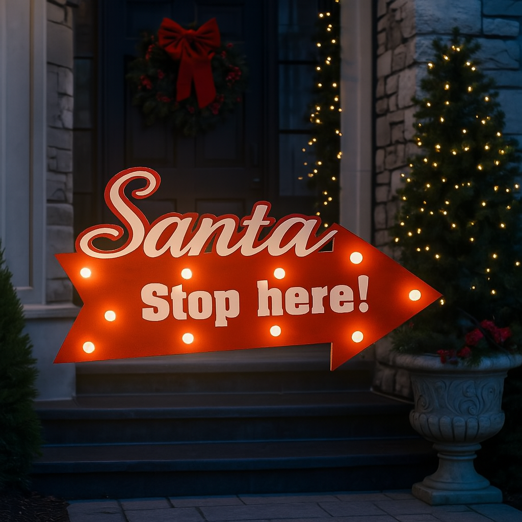 Questo cartello segnaletico natalizio da appendere è una decorazione che unisce la calda tradizione del legno alla magia luminosa delle feste, studiata per portare un tocco scenografico e allegro in casa durante il periodo natalizio.