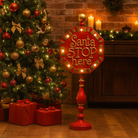 Questo cartello segnaletico natalizio è una decorazione realizzata in metallo, progettata per portare subito un tocco festoso e luminoso all’ambiente durante il periodo delle feste.