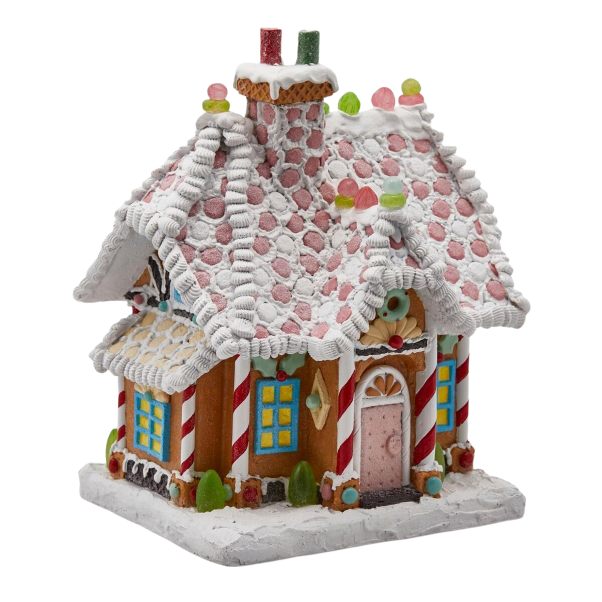 Con dimensioni di 26 x 23 x h 31 cm, questa affascinante casa cattura l'essenza delle festività con il suo design dettagliato e le caramelle decorative.