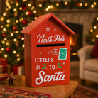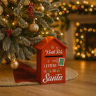 Avvolta in un vivace abito rosso rubino, questa cassetta per lettere natalizia in legno trasforma il gesto di scrivere a Babbo Natale in un piccolo rito di magia domestica.