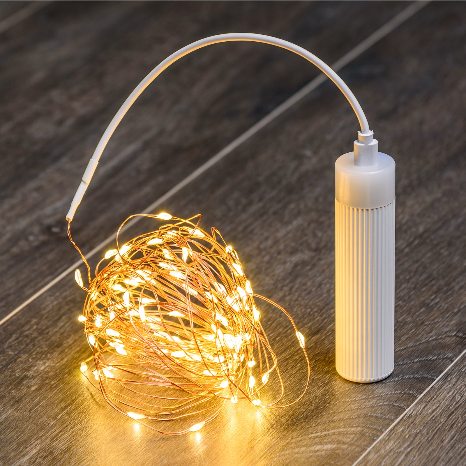 Luci di natale catena Micro Led Fissi e filo in metallo con Power Bank e telecomando 10 mt