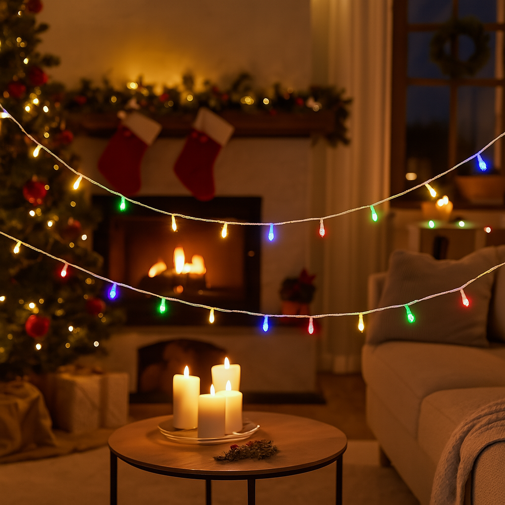 Catena luminosa "200 SMD Dual Color" LED bianco caldo e multicolor ad alta luminosità a 360°, 20 mt