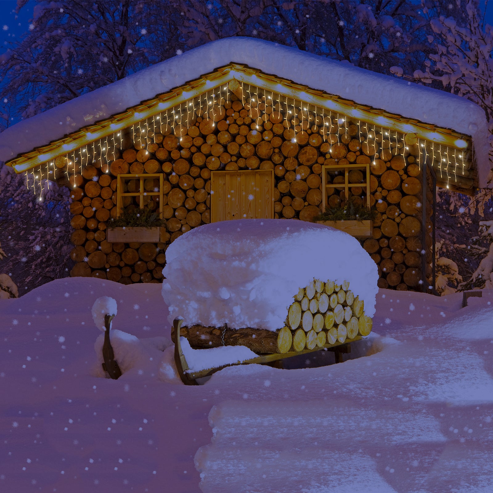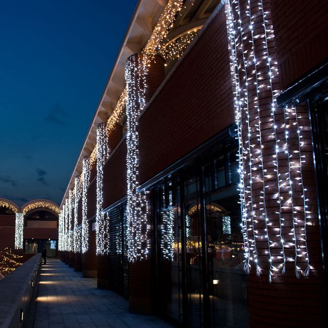 Catena luminosa con maxi led stalattiti a cascata per esterno uso professionale luce calda 3 x h 1 mt