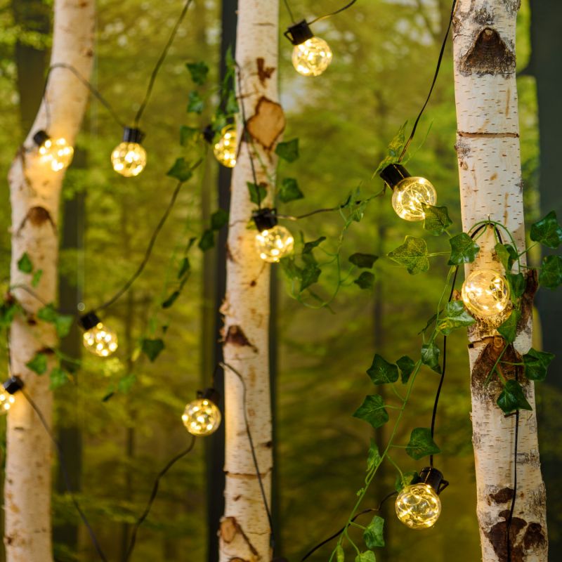 Catena solare 15 lampadine Ø 50 mm luce calda da esterno 6 mt