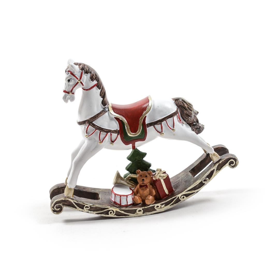 Cavallo a dondolo bianco per decorazioni natalizie, altezza 18.5 cm