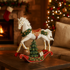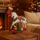 Questo cavallo a dondolo bianco è una decorazione natalizia dallo stile delicato ed elegante, perfetta per evocare la magia dei giochi d’infanzia e l’atmosfera calda delle feste.