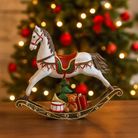 Questo cavallo a dondolo natalizio è una decorazione da interno che unisce tradizione e vivacità cromatica, ideale per portare un tocco di festa in ogni ambiente della casa.