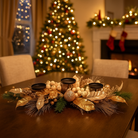 Questo elegante centrotavola natalizio si distingue per la sua raffinatezza e la cura nei dettagli, pensato per impreziosire la tavola delle feste con un tocco di classe.
