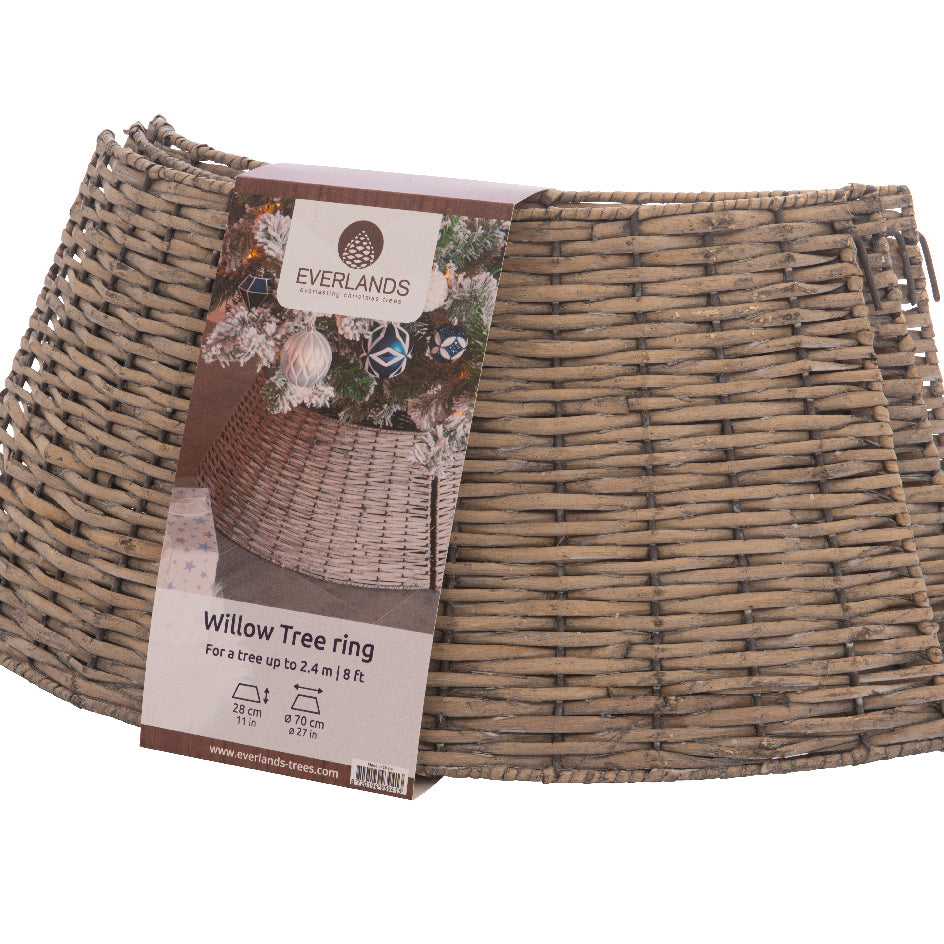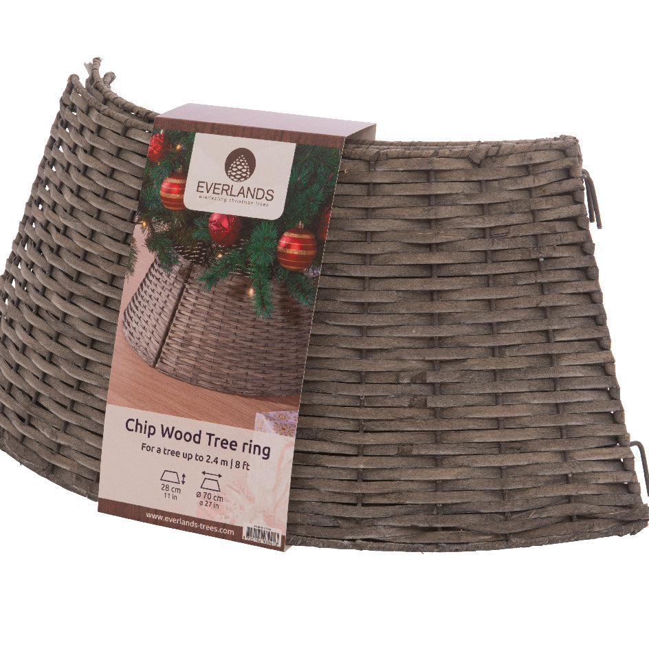 La cesta è progettata per avvolgere la base dell'albero, nascondendo il supporto e i cavi, offrendo una soluzione pratica e decorativa.