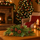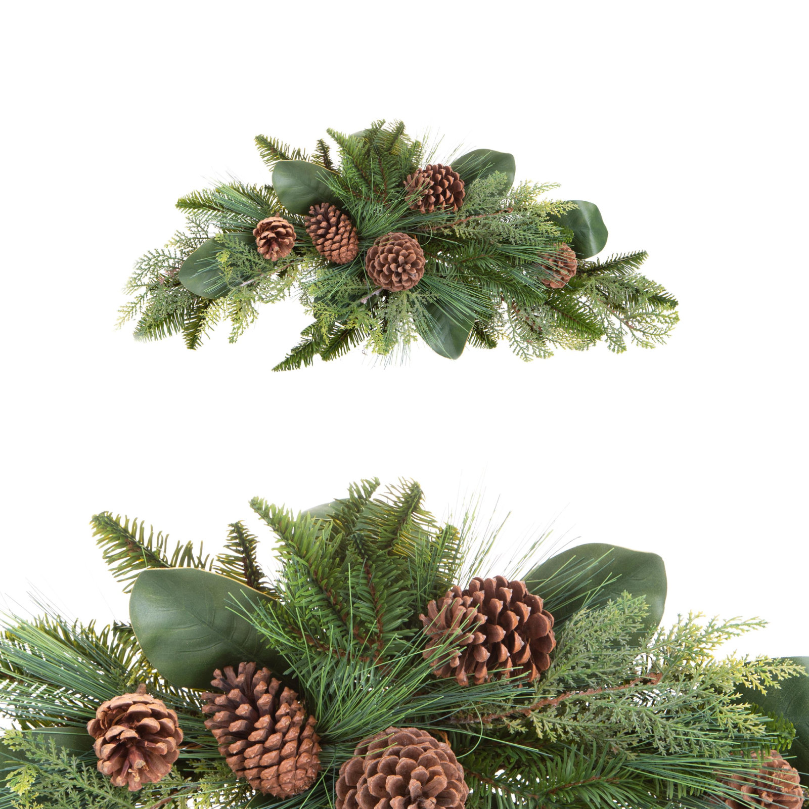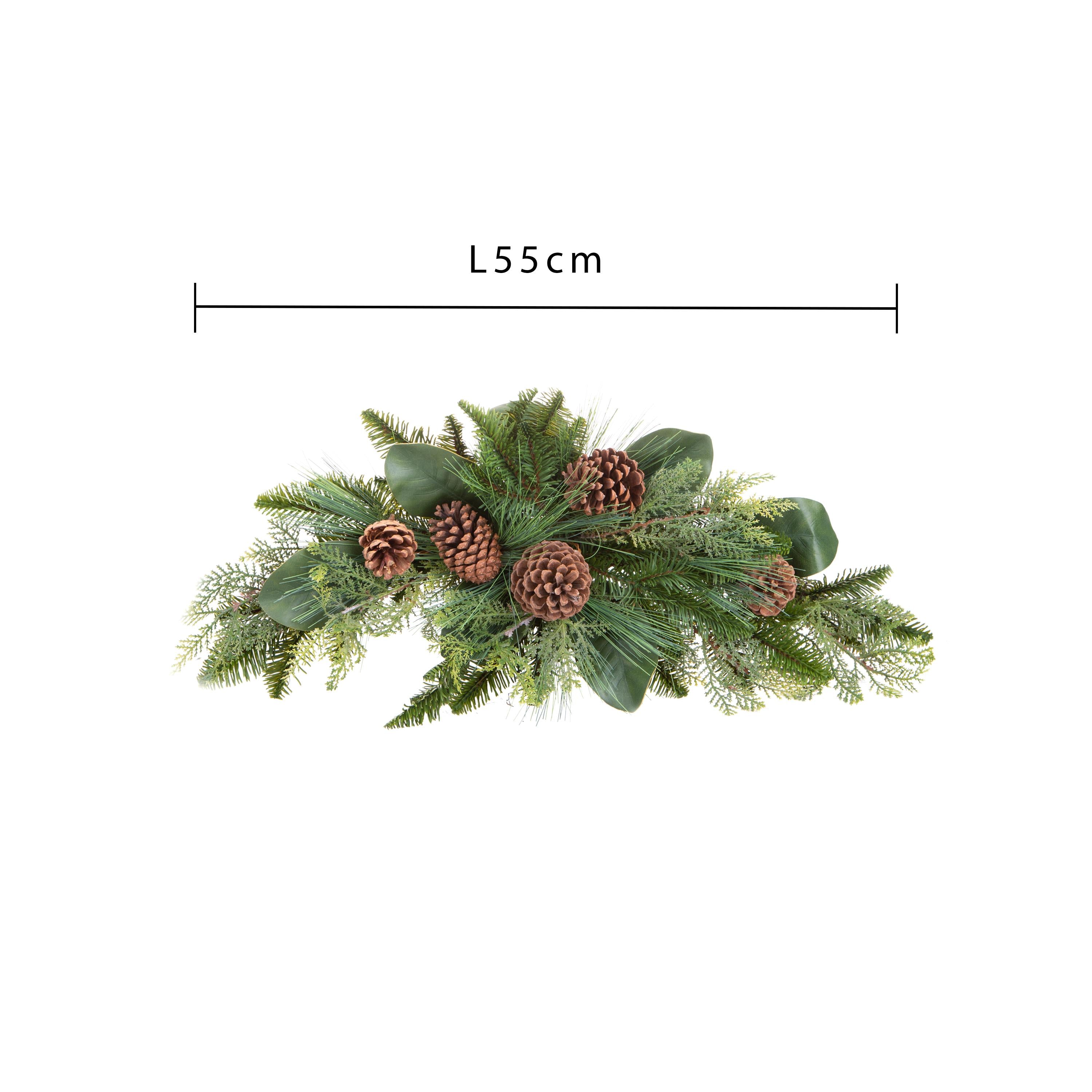 Porta la magia del Natale nella tua casa con questa elegante composizione verde di pigne e foglie sintetico, perfetta per arricchire le tue decorazioni natalizie.