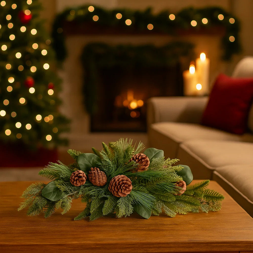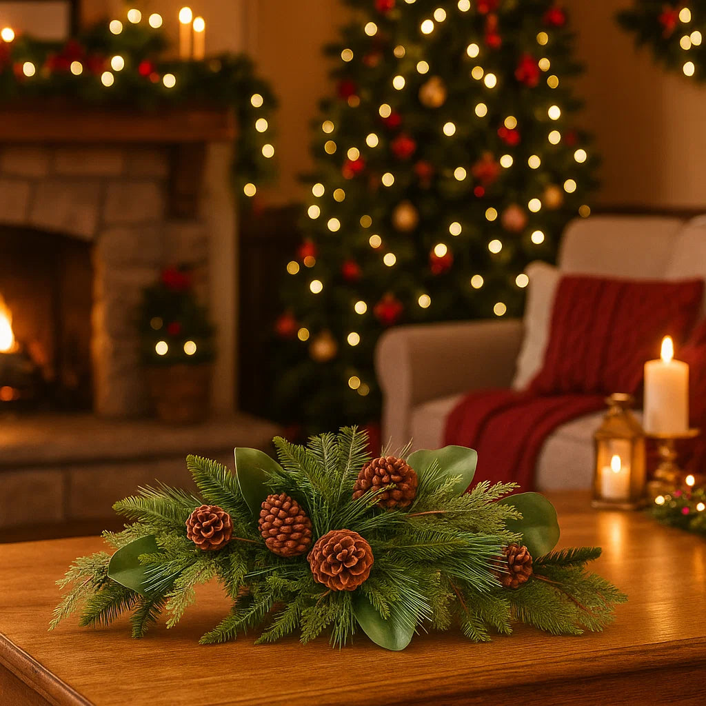 La nostra composizione verde di pigne e foglie sintetico è l’aggiunta perfetta per un Natale all’insegna della bellezza e della durata.