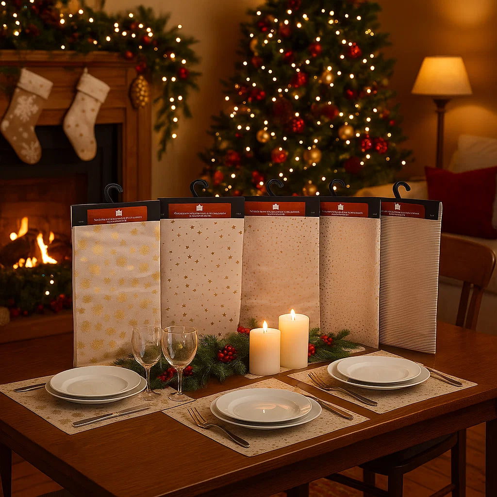 Rendi la tua tavola ancora più speciale con i tovaglioli natalizi “Tartan”. Il loro elegante motivo scozzese in rosso, verde e oro dona subito un’atmosfera calda e festosa, perfetta per cene e pranzi in famiglia durante le festività. Realizzati in morbida carta di qualità, uniscono praticità e stile, permettendoti di apparecchiare con gusto senza rinunciare alla comodità. Con la loro presenza raffinata e tradizionale, saranno il dettaglio che completa l’allestimento della tua tavola natalizia e conquisteranno i tuoi ospiti.