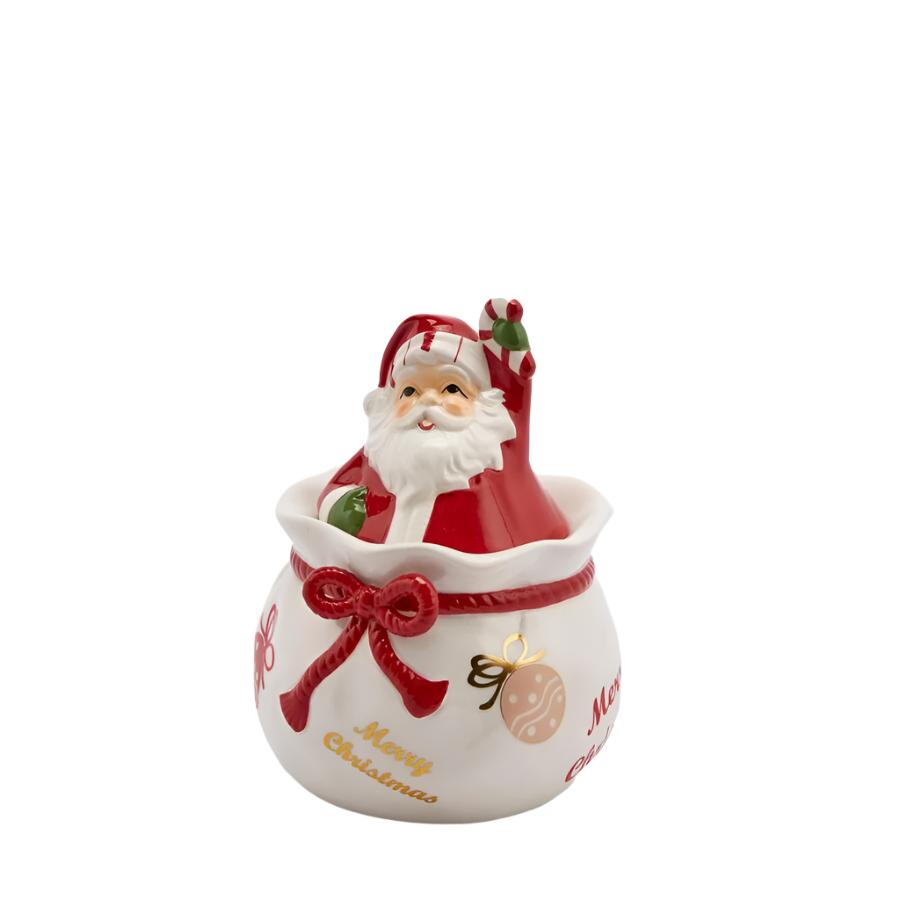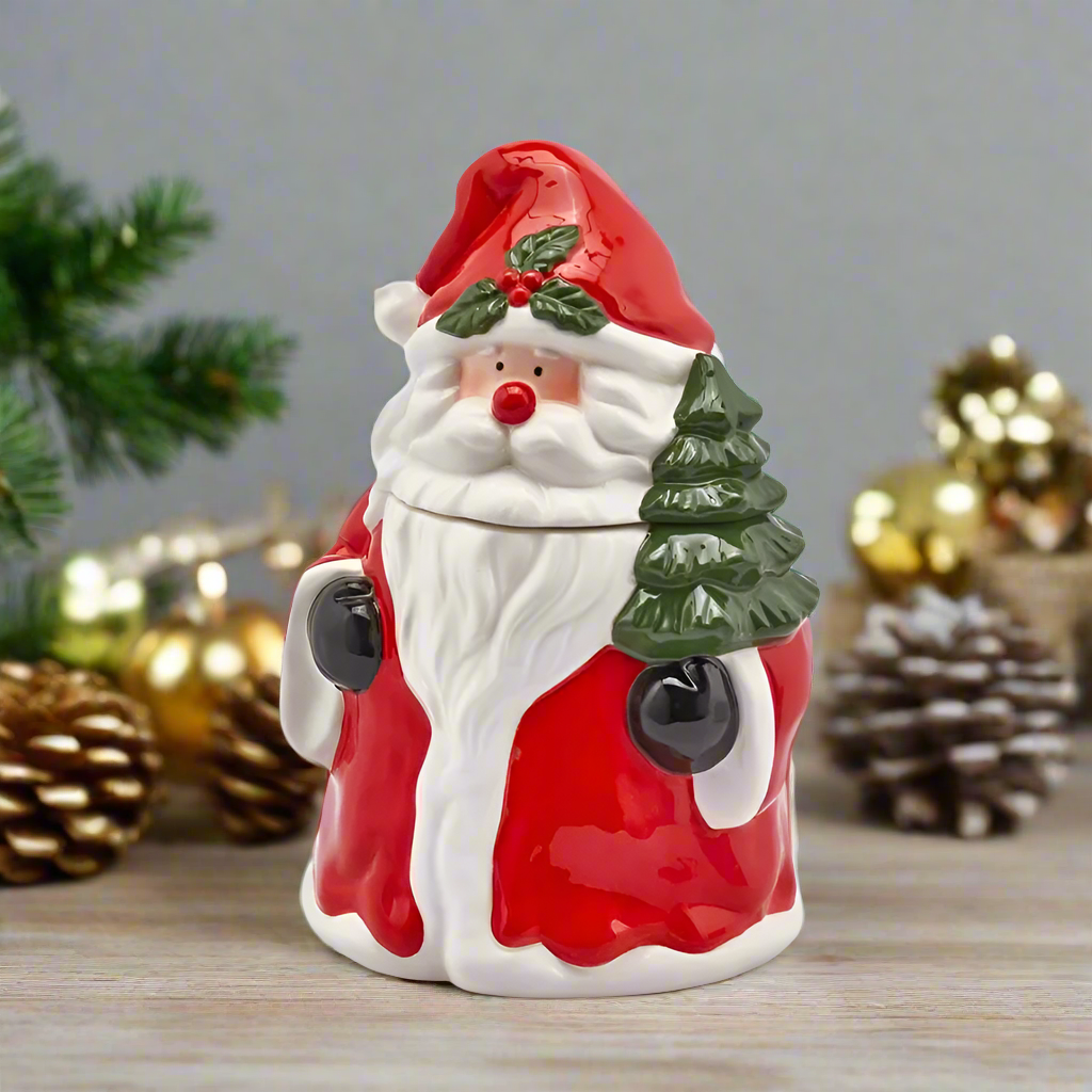 Alto 27 cm, presenta un adorabile Babbo Natale che regge un alberello, perfetto per aggiungere un tocco festivo alla tua cucina o sala da pranzo.
