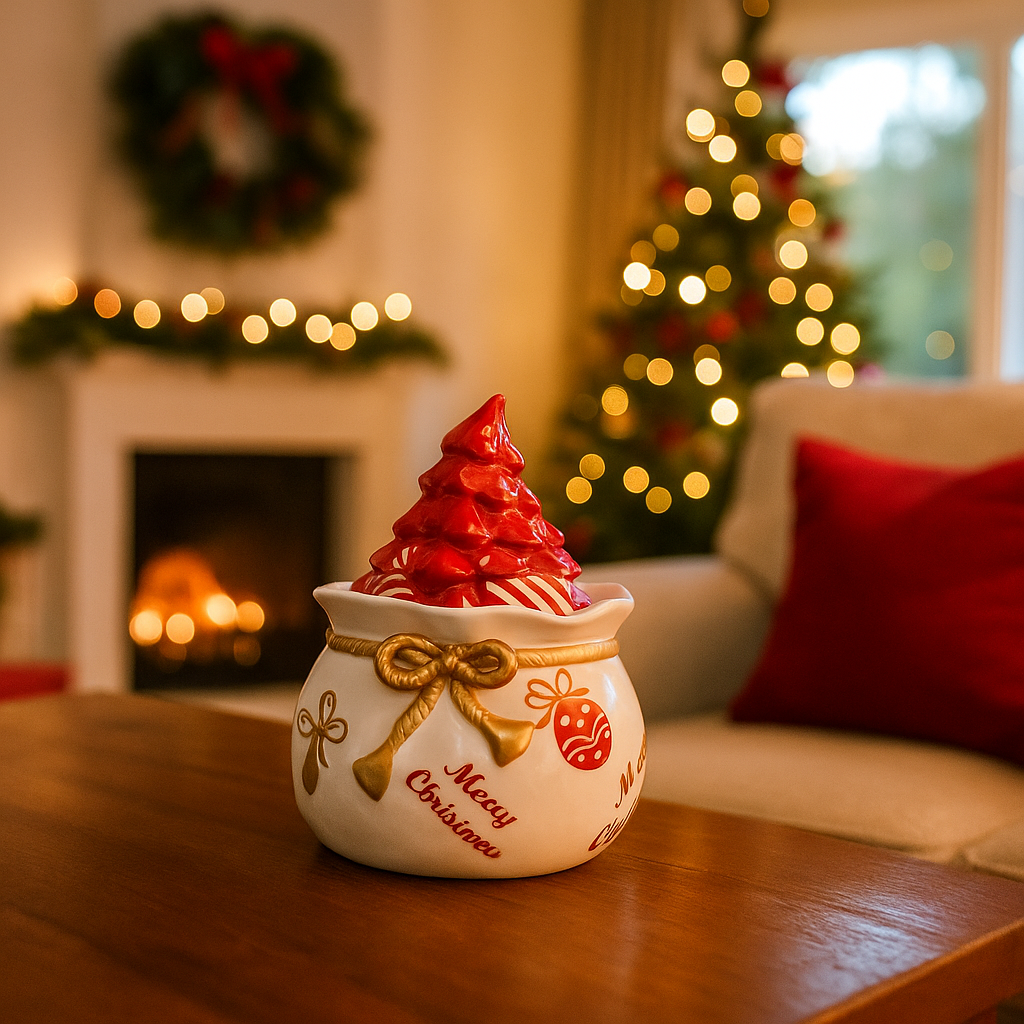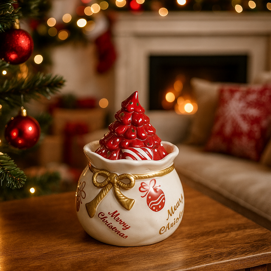 Questo barattolo in ceramica è un'aggiunta incantevole per le decorazioni natalizie della tua casa.