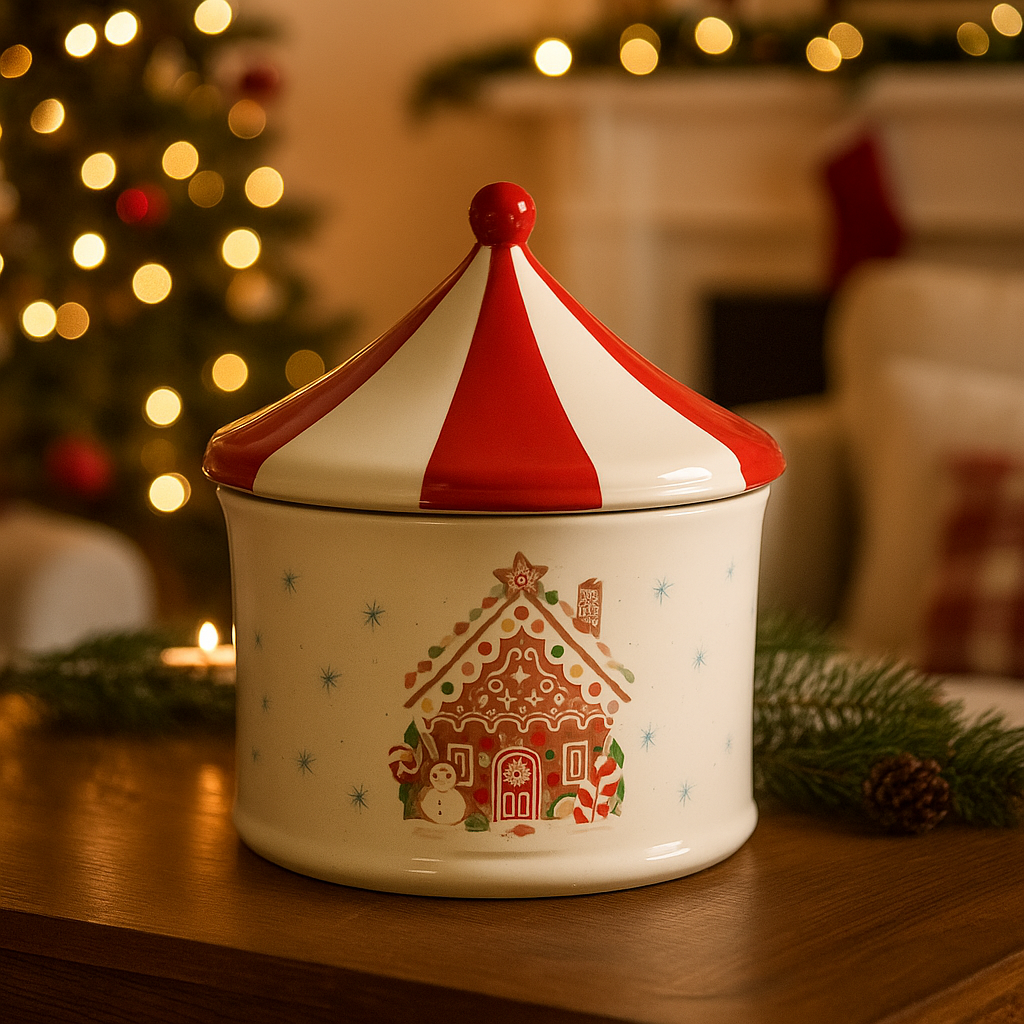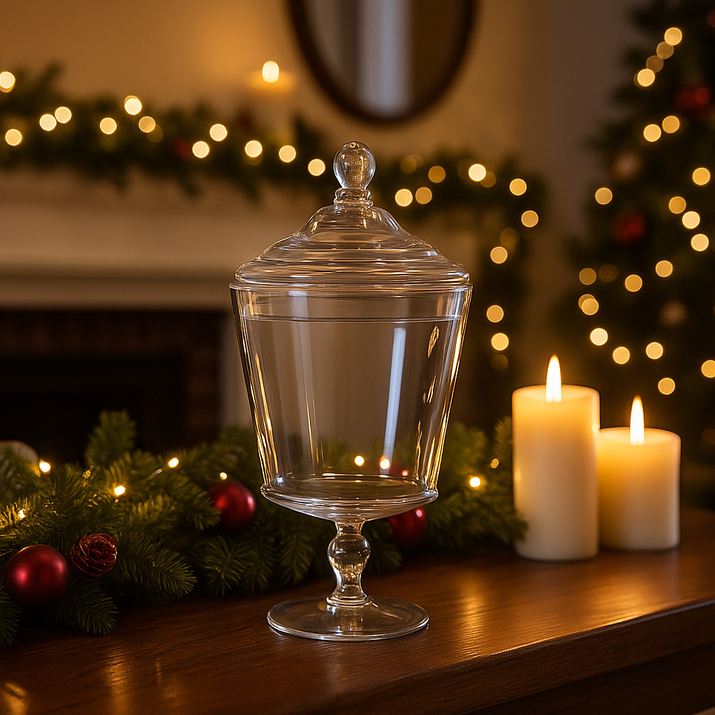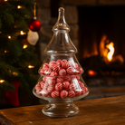 Contenitore in vetro a forma di pino per biscotti natalizi e caramelle