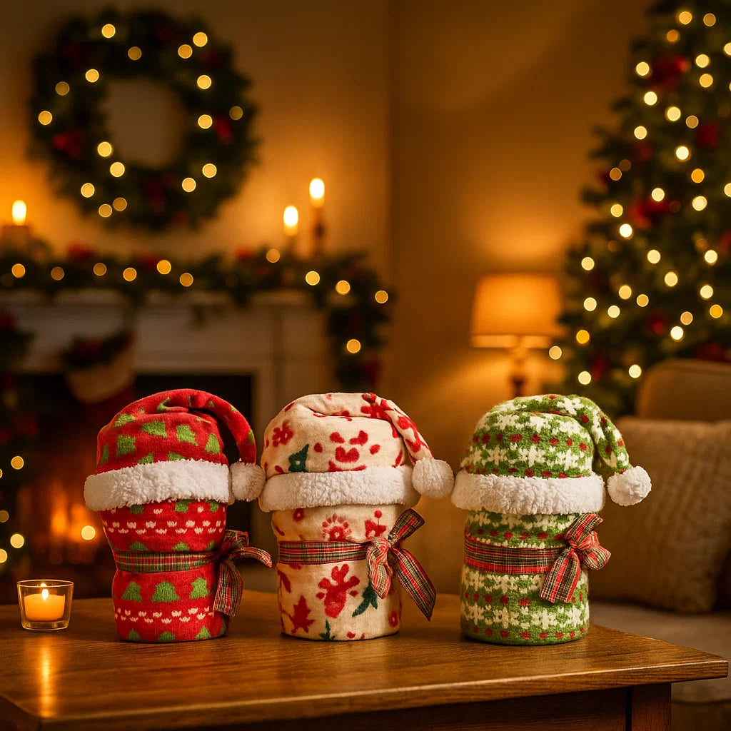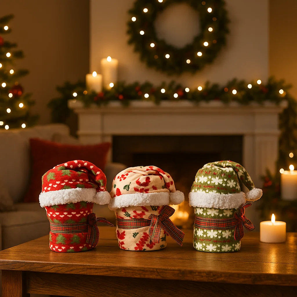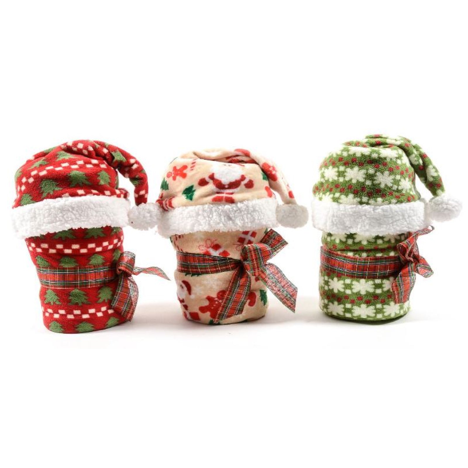 La coperta natalizia con cappello è un'adorabile decorazione che unisce la funzionalità di una coperta alla festività del periodo natalizio, aggiungendo calore e un tocco di magia agli ambienti domestici.