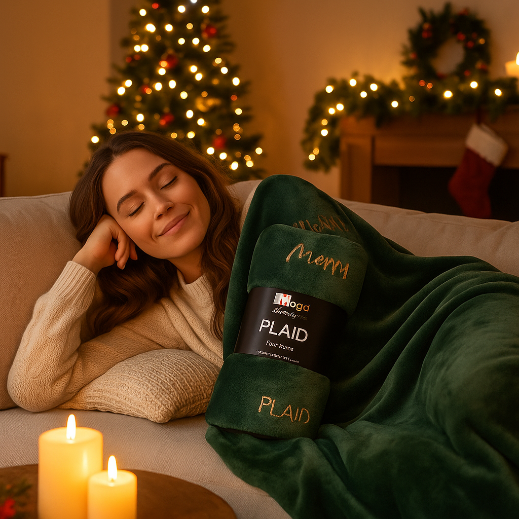 Scopri il calore e lo spirito festivo del Natale con questa accogliente coperta plaid in pile, decorata con la scritta "Merry Christmas".