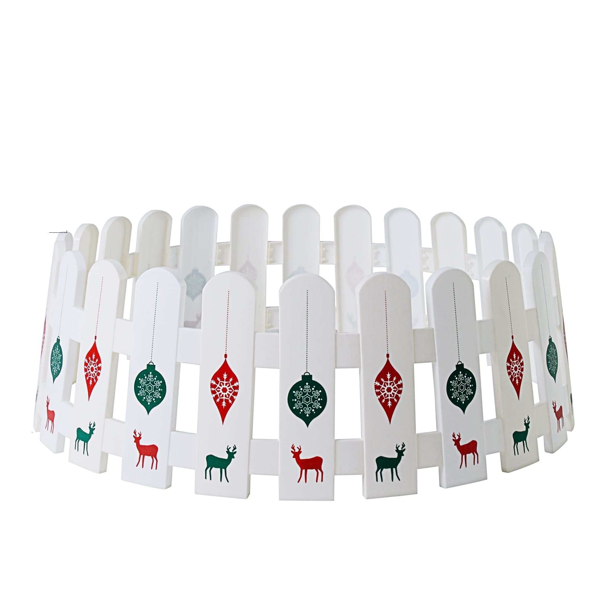 Copri base per Albero di Natale colore bianco con renne e palline decorazione natalizia