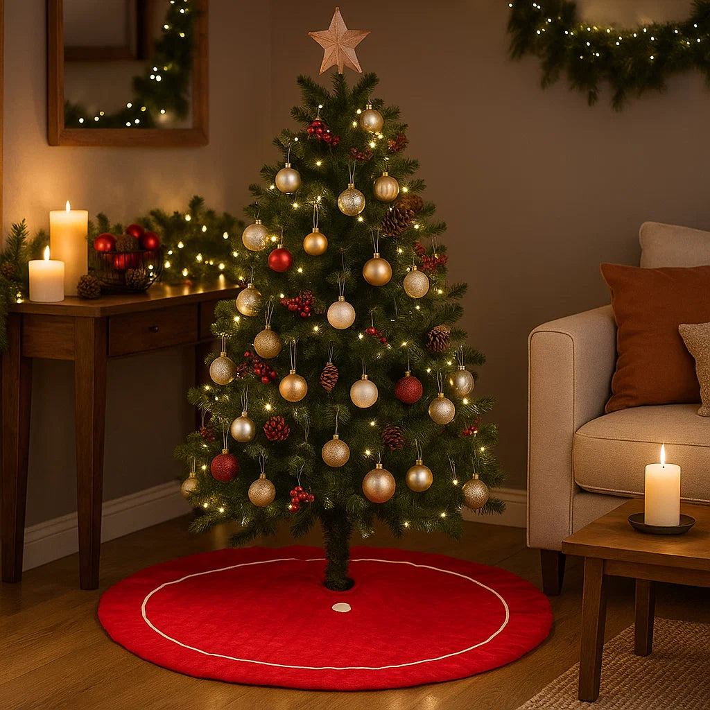 Realizzato in morbido velluto, questo accessorio unisce estetica e funzionalità, nascondendo la base dell’albero e donando all’insieme un aspetto armonioso e curato.