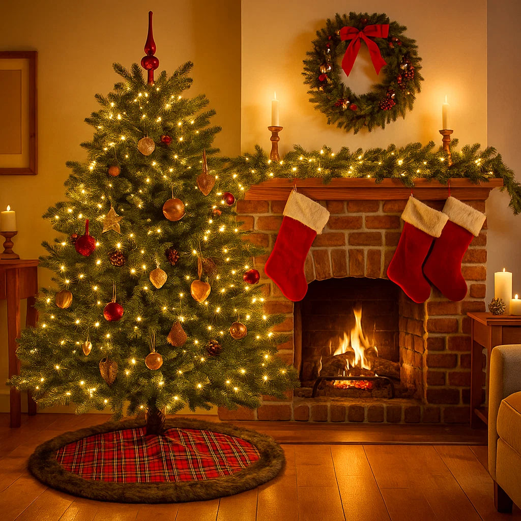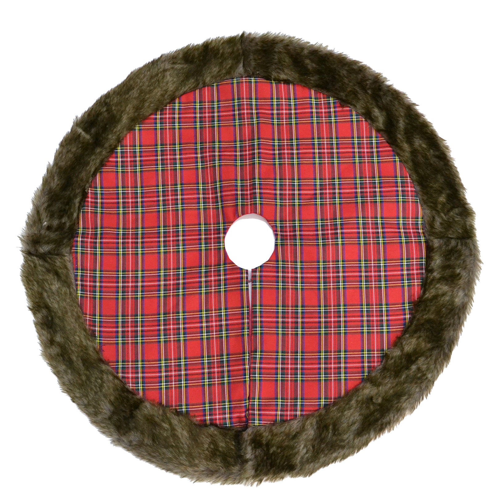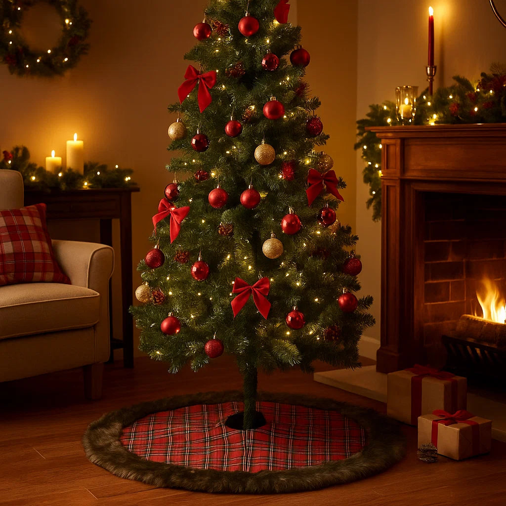 Dona un tocco caldo e accogliente al tuo Natale con il copri base per albero in tessuto scozzese con pelliccia marrone da Ø 120 cm, un accessorio elegante che unisce tradizione e stile contemporaneo.