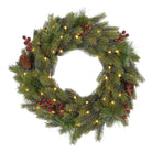 Corona Alpino con decori pigne e ribes in finto pino a batteria Ø 40 cm, 50 led integrati bianco caldo