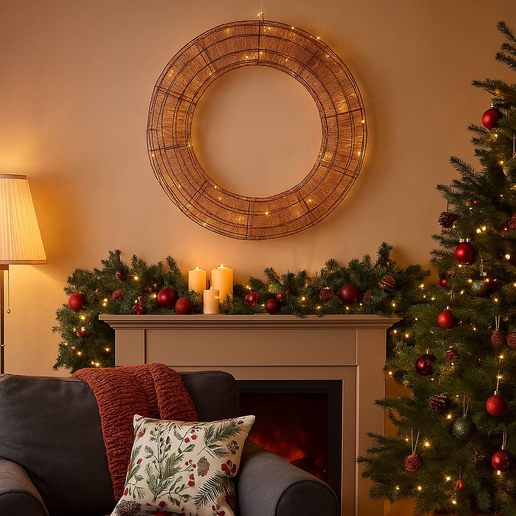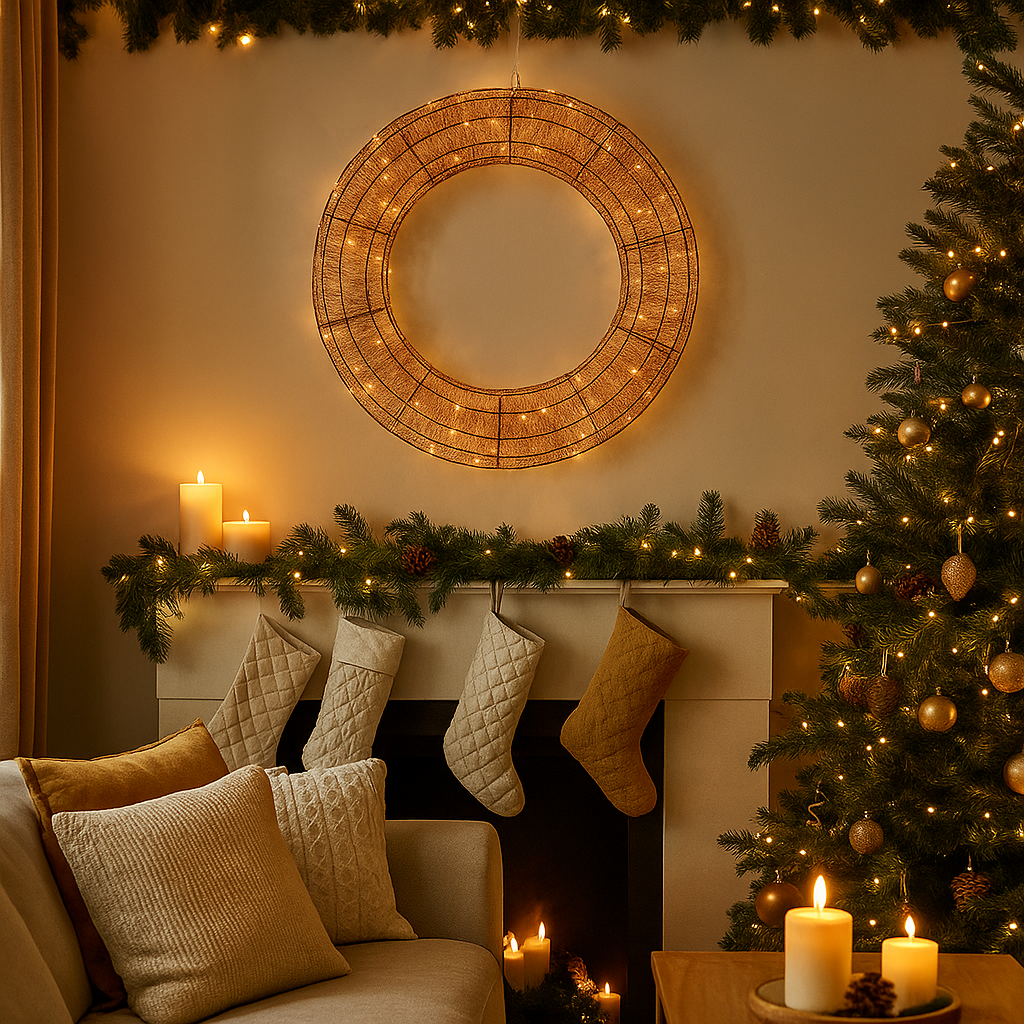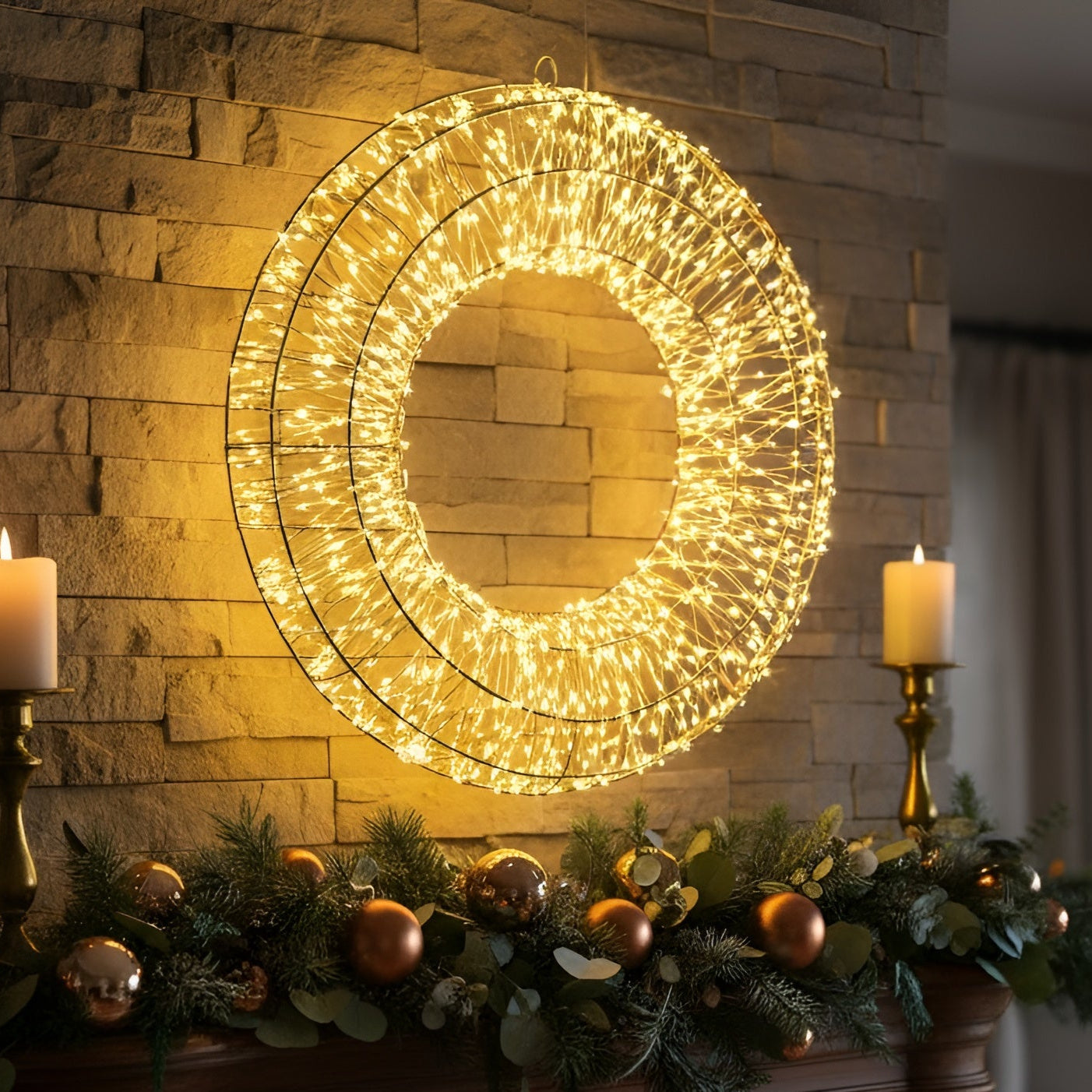 Corona di metallo "Classic Copper" Luminosa a led con nanoled per Interno con filo di Rame