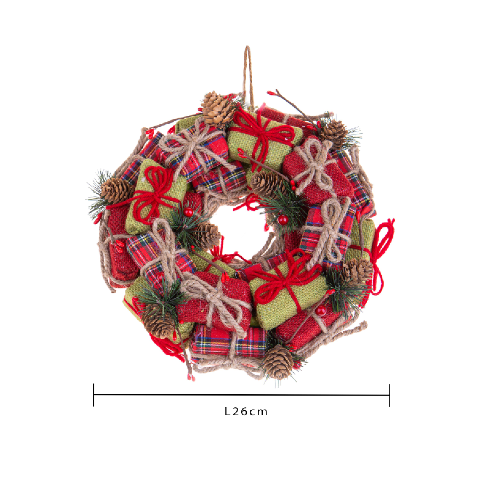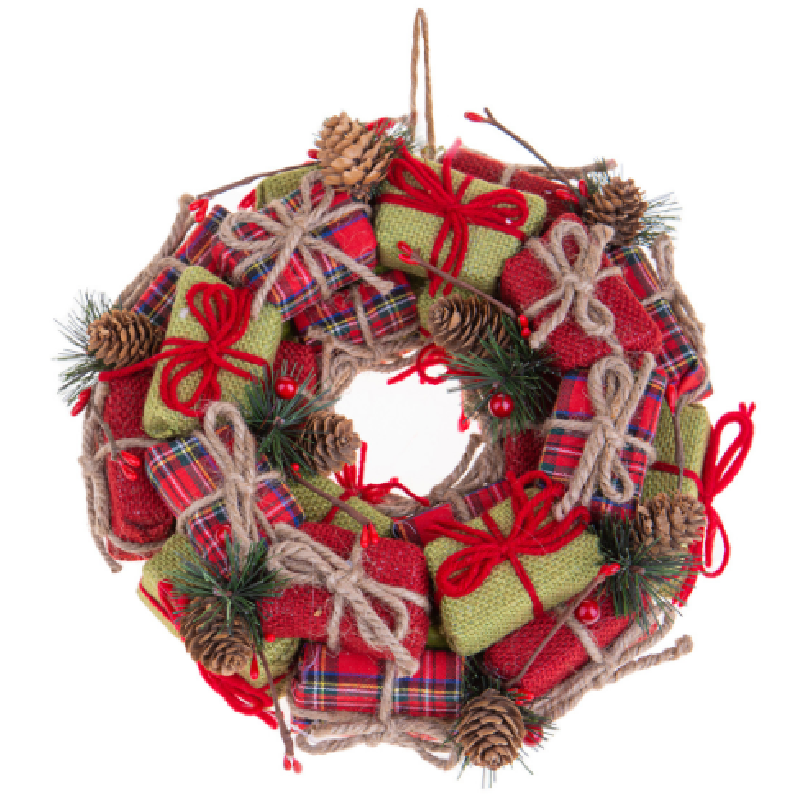 Corona natalizia versatile decorata con pacchi regalo h 26 cm