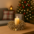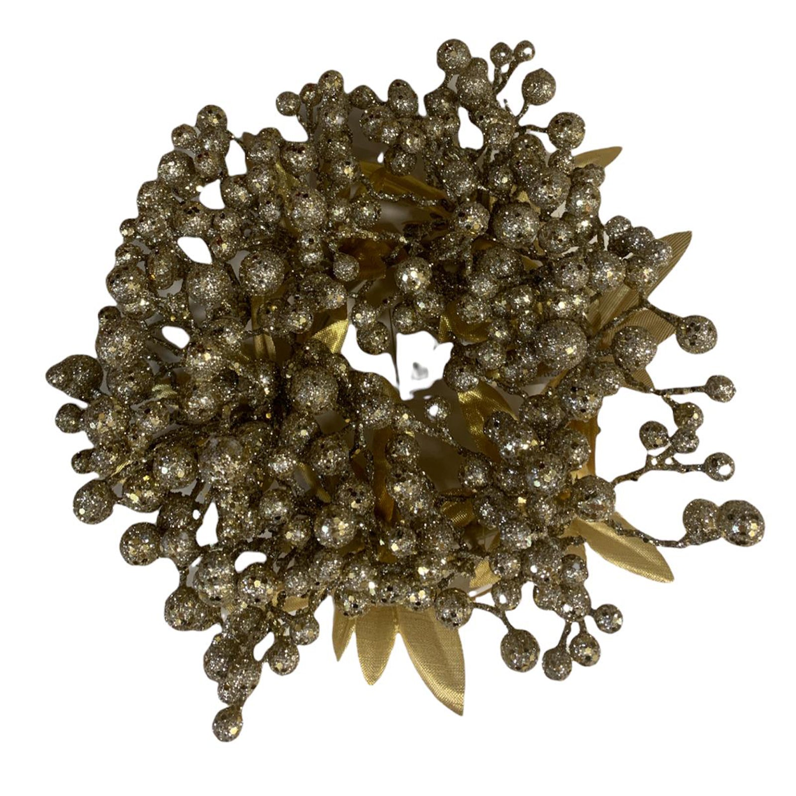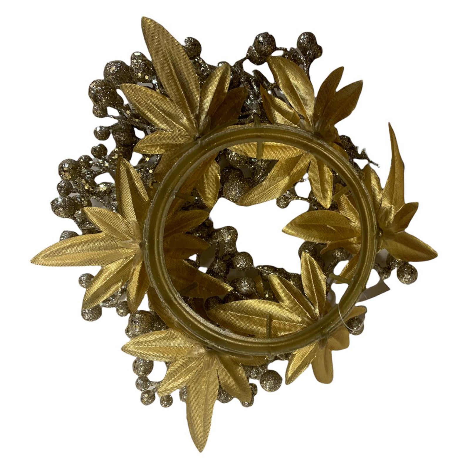 Portacandela natalizio Oro "Mille Bacche" diametro della corona Ø 20 cm, diametro della candela 5 cm e altezza 10 cm