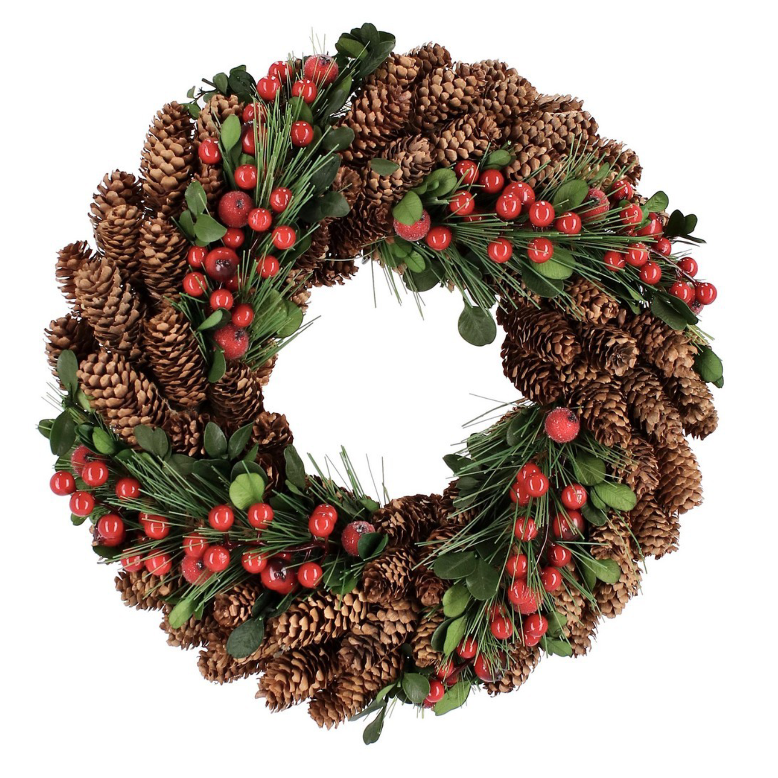- Design Elegante: La corona "Olympia" è realizzata con cura, caratterizzata da una combinazione di elementi naturali e bacche rosse in polistirolo. Questa scelta di materiali conferisce un aspetto realistico e raffinato, perfetto per qualsiasi decorazione natalizia.