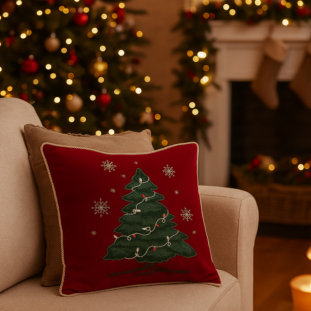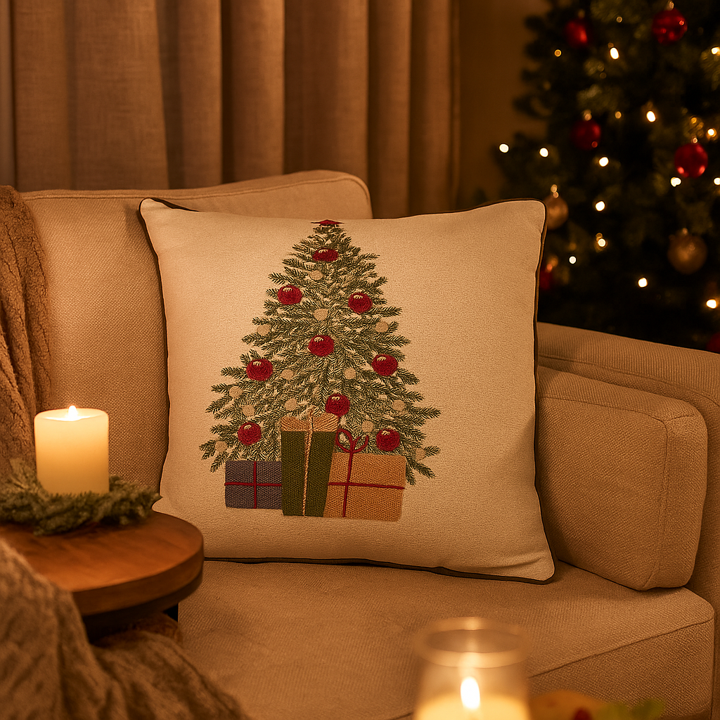 L’albero natalizio stampato in evidenza aggiunge un tocco festivo elegante, perfetto per ambienti classici o contemporanei.