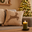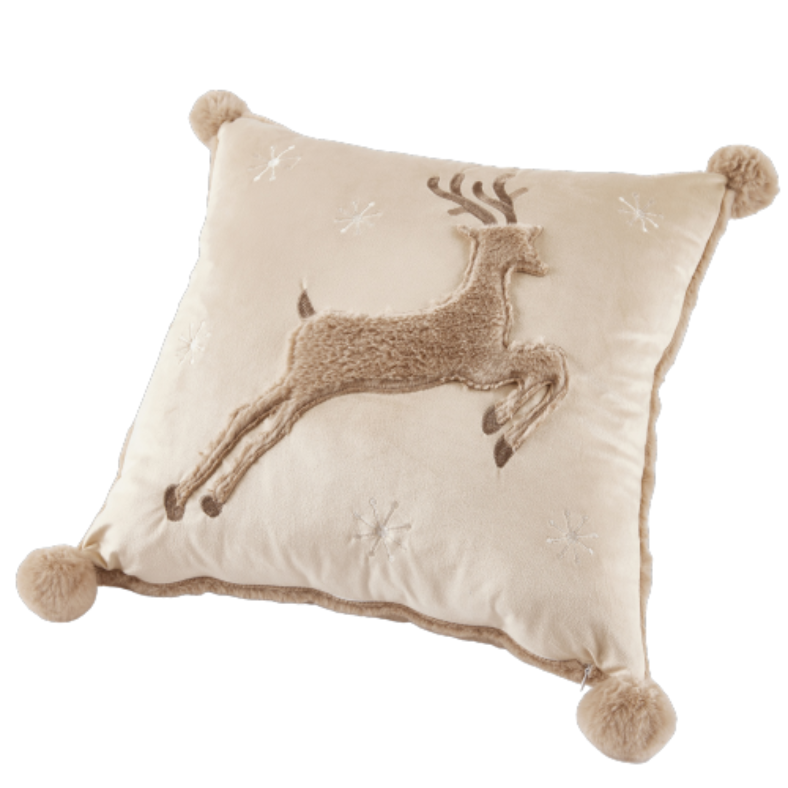 Cuscino quadrato color champagne con immagine di renna lato da 45 cm