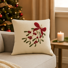 Cuscino quadrato color panna con immagine di vischio lato da 45 cm