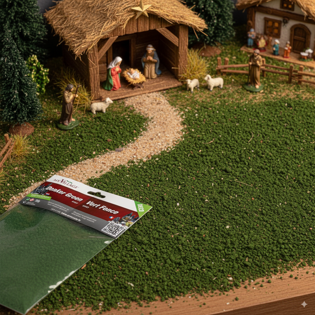 Porta realismo e profondità alle tue scenografie natalizie con la dispersione grossolana verde scuro, l’accessorio perfetto per creare pascoli, prati e macchie di vegetazione nel tuo presepe o villaggio di Natale.