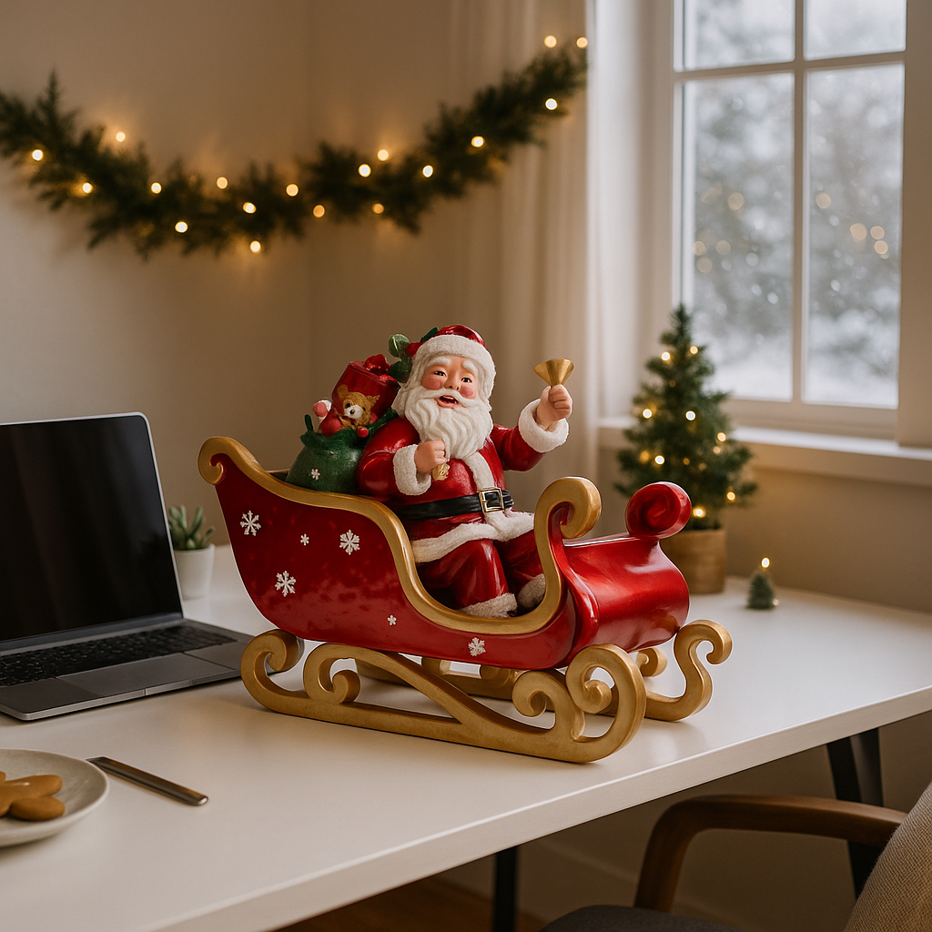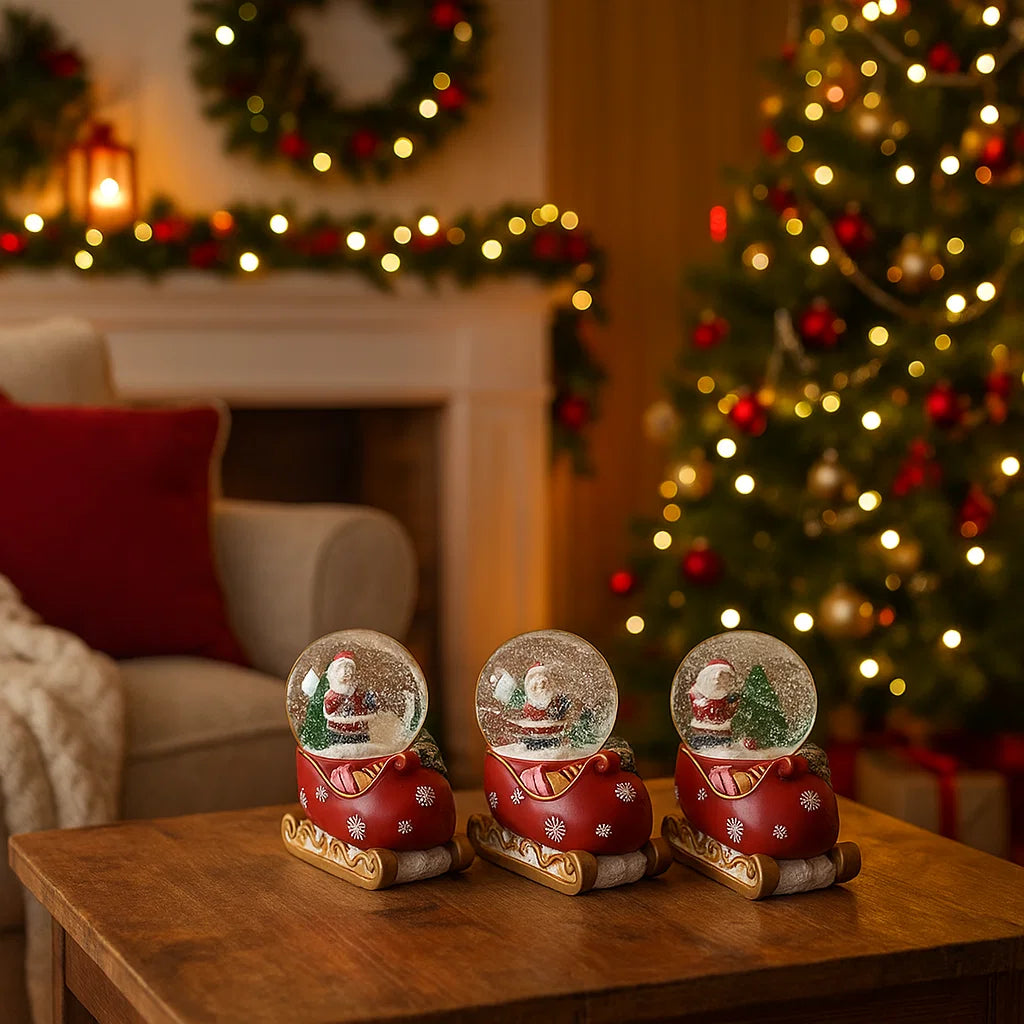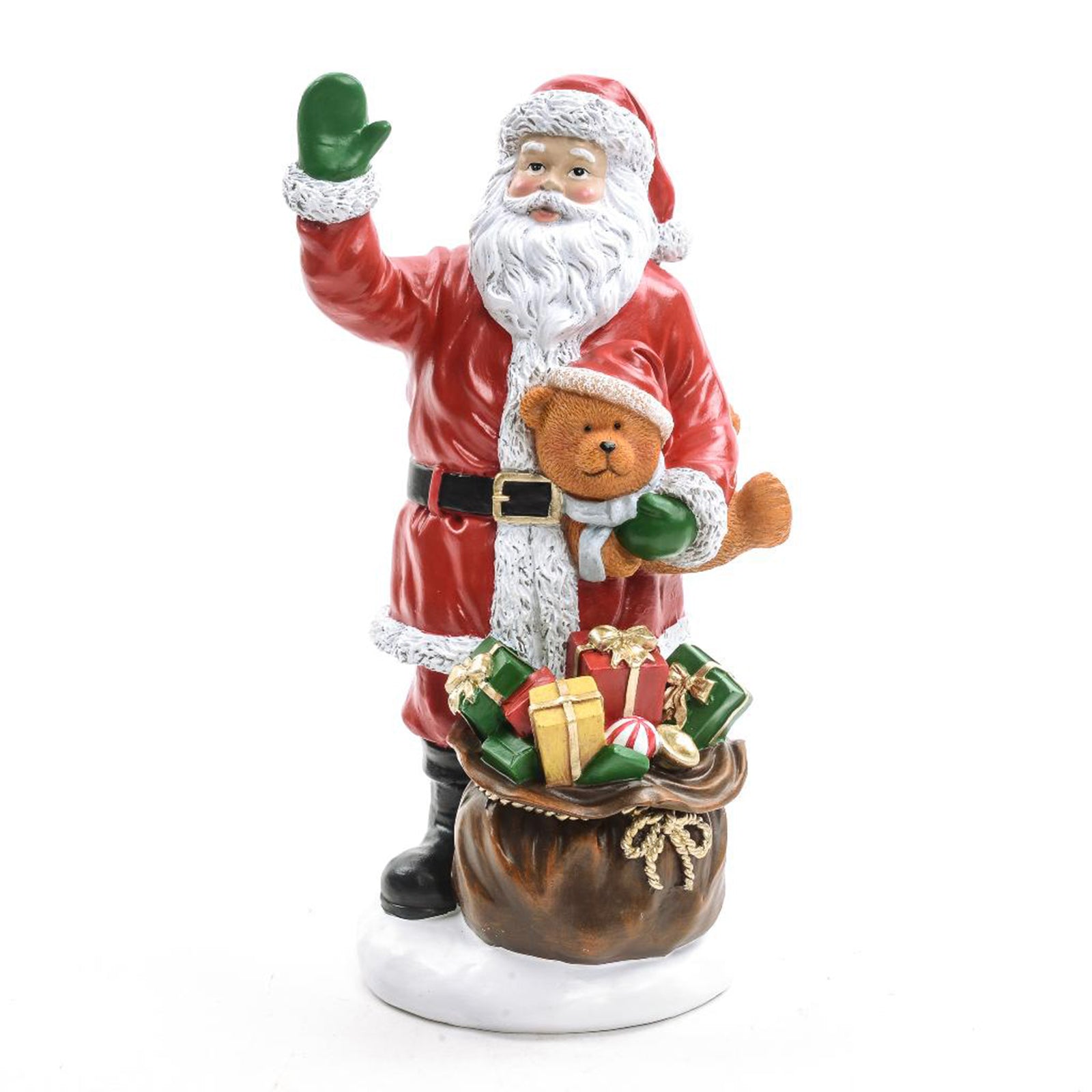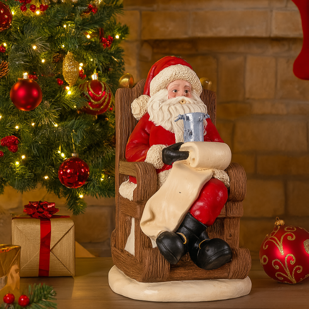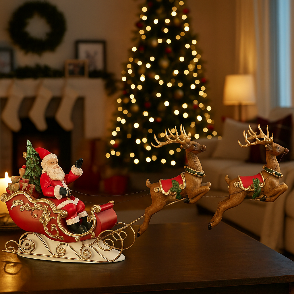 Babbo Natale seduto con slitta e renne decorazione natalizia da h 39 cm