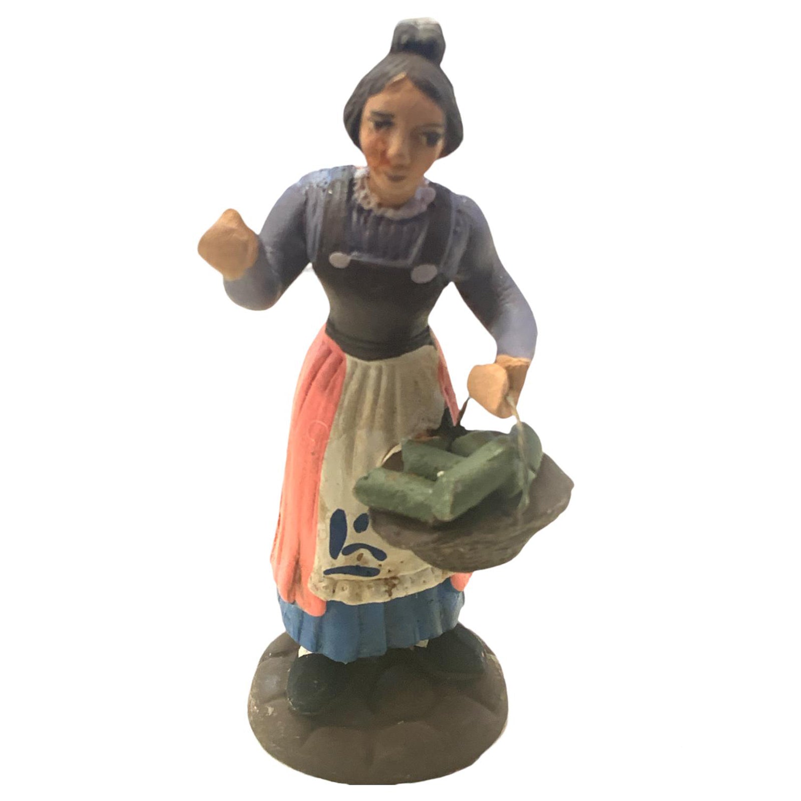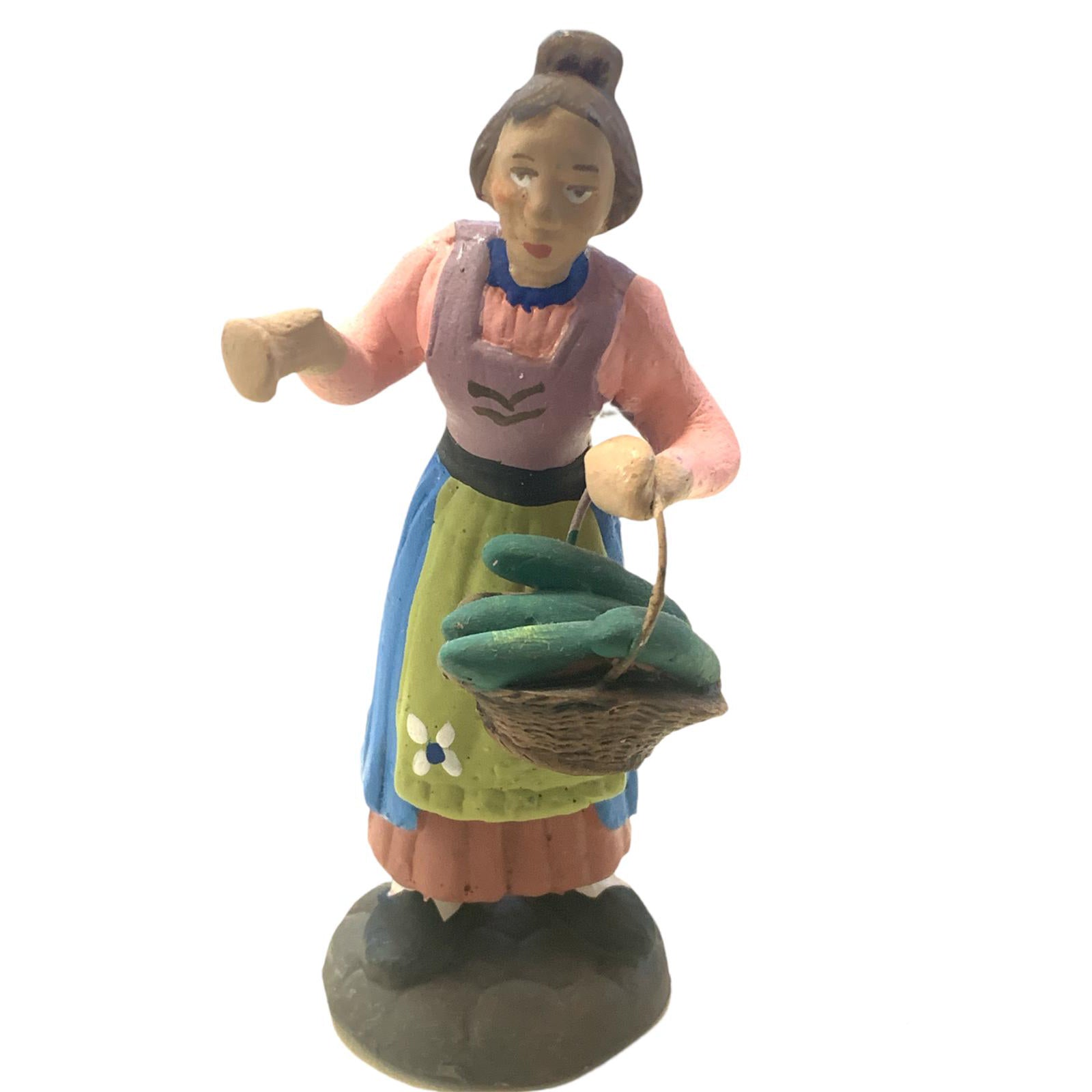 Donna con cesto e verdura statuetta in terracotta artigianale per presepe napoletano da h 7 cm