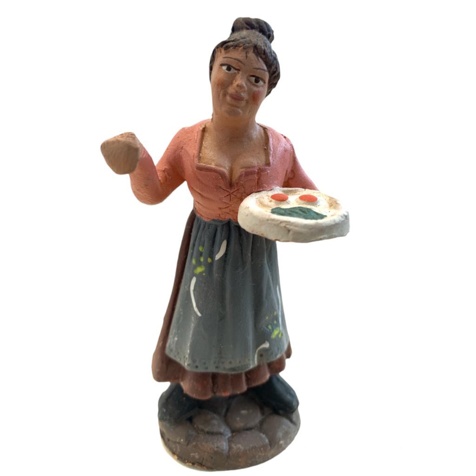 Donna con uova statuetta in terracotta artigianale per presepe napoletano da h 10 cm