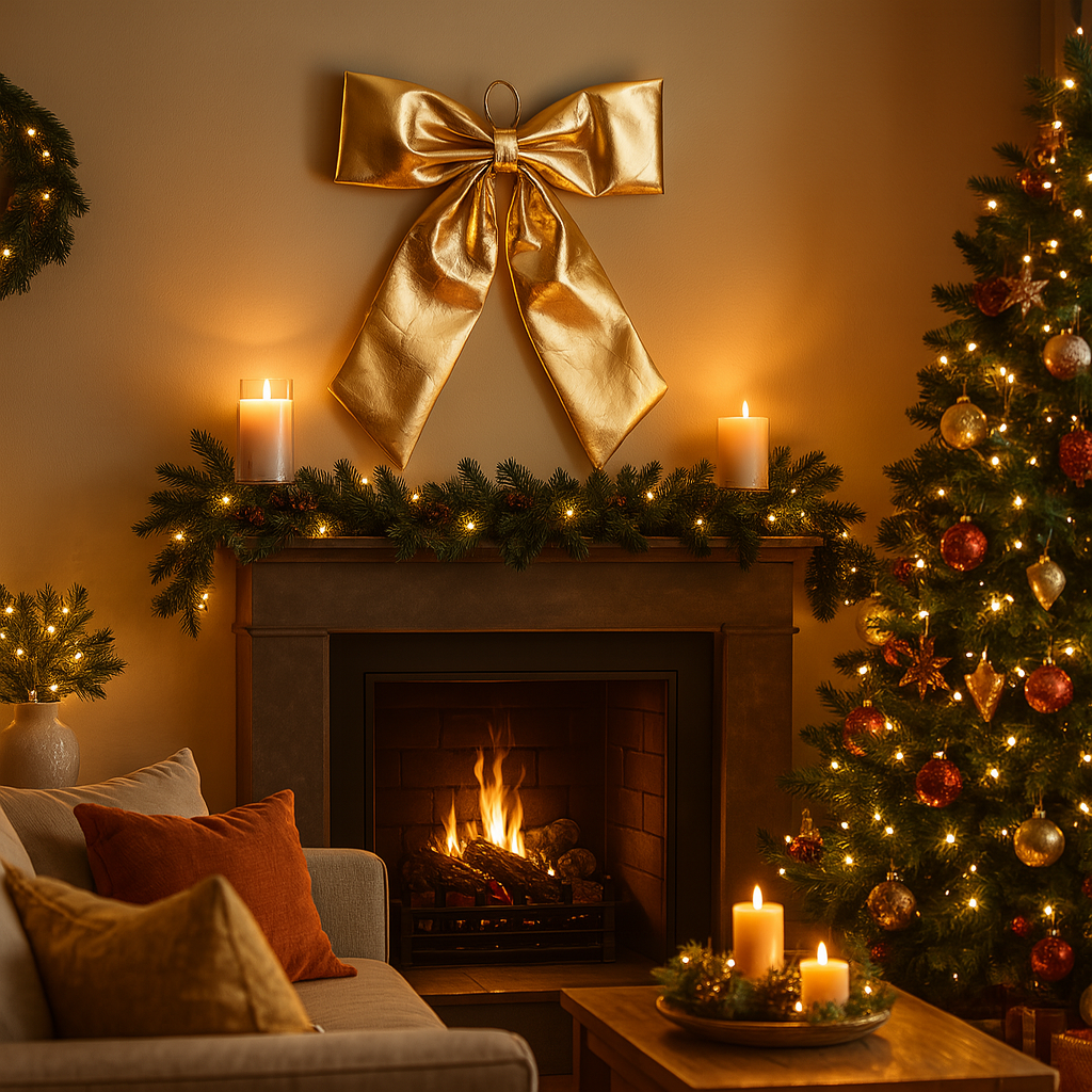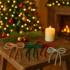 Illumina le tue decorazioni natalizie con questo elegante fiocco doppio arricchito da delicati brillantini dorati.