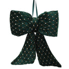 Fiocco in velluto verde scuro con ricami oro decorazione natalizia da appendere, da 30cm