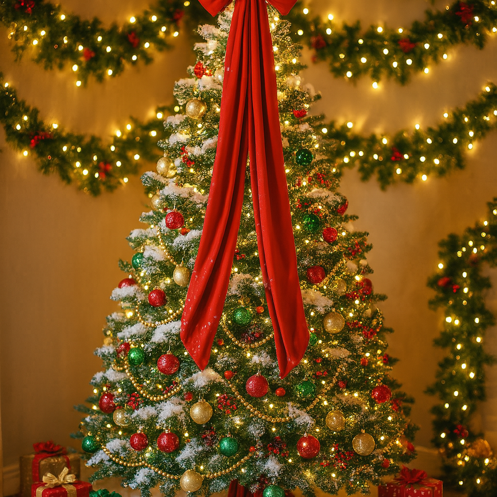 Il tessuto morbido e luminoso crea un effetto raffinato e avvolgente, perfetto per impreziosire alberi di Natale, ghirlande, centrotavola o confezioni regalo importanti.